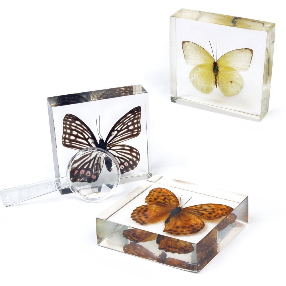 A high quality butterfly study kit for children. Three preserved, Genuine Butterfly specimens in resin blocks. Great study kit for Schools and Colleges and for Pre-School Science lessons.