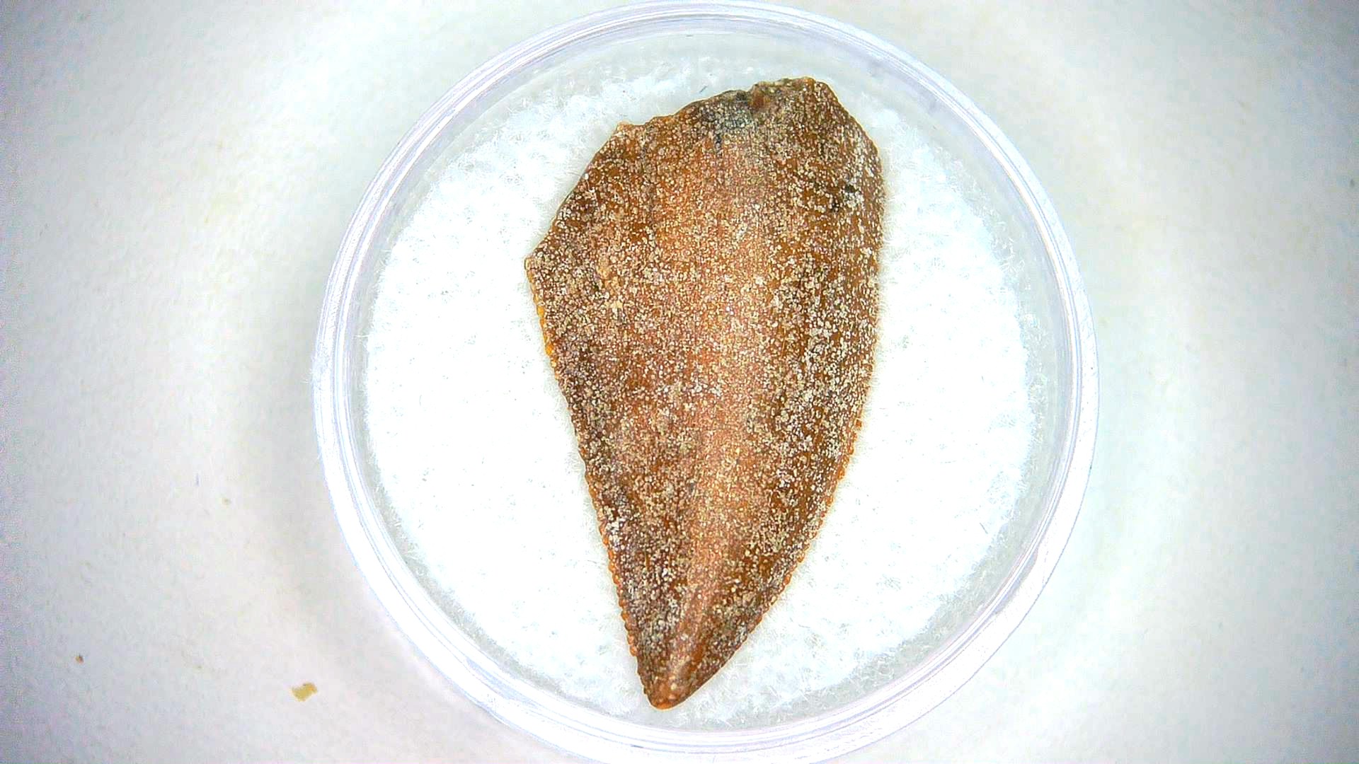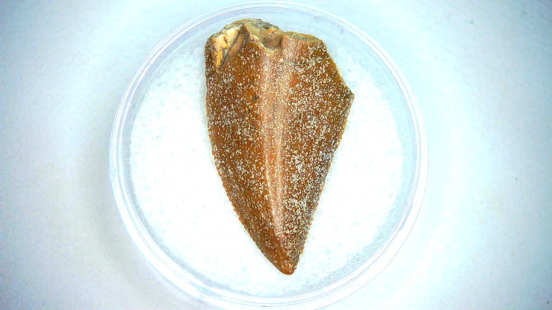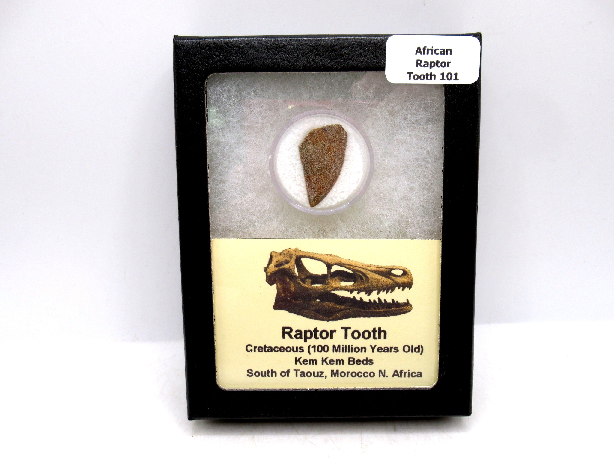 - This top quality .96″ long dinosaur tooth has decent enamel & sharp serrations. It will come in the 3.25″ x 4.25″ Riker Mount with Label as shown.