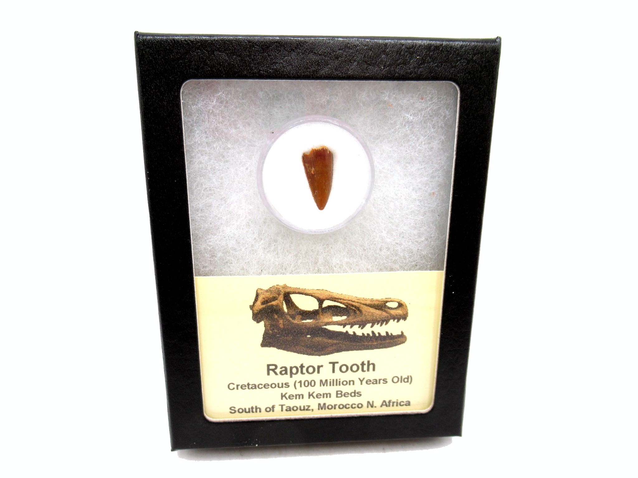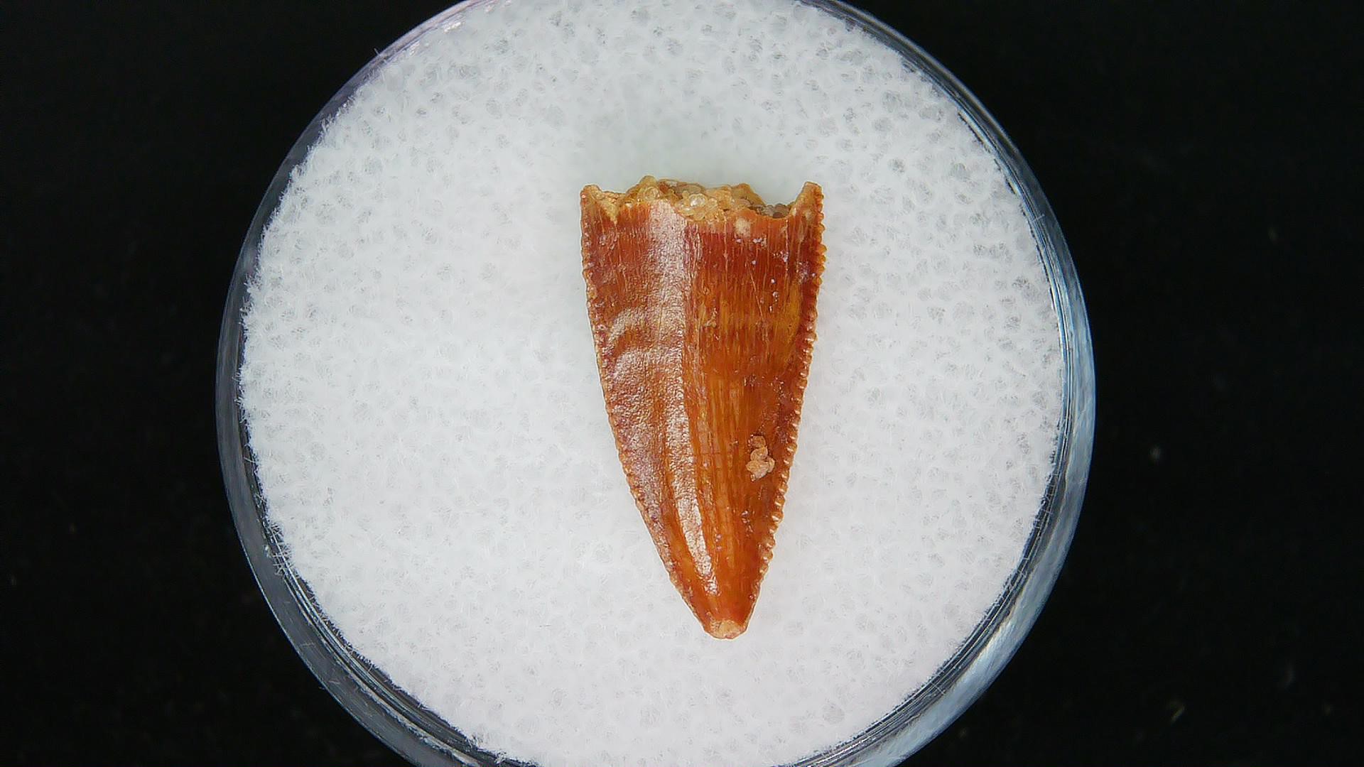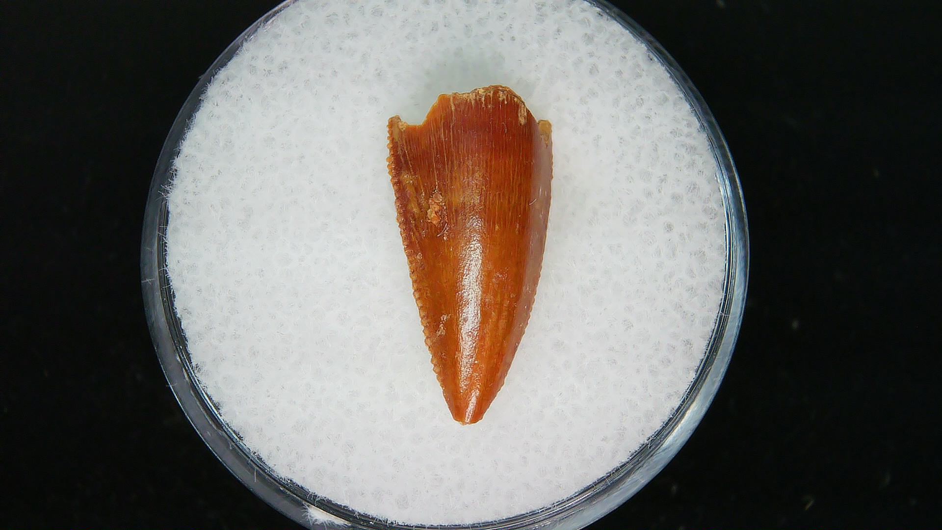 - This top quality .62″ dinosaur tooth has nice enamel & sharp serrations. It will come in the 3.25″ x 4.25″ Riker Mount with Label as shown.