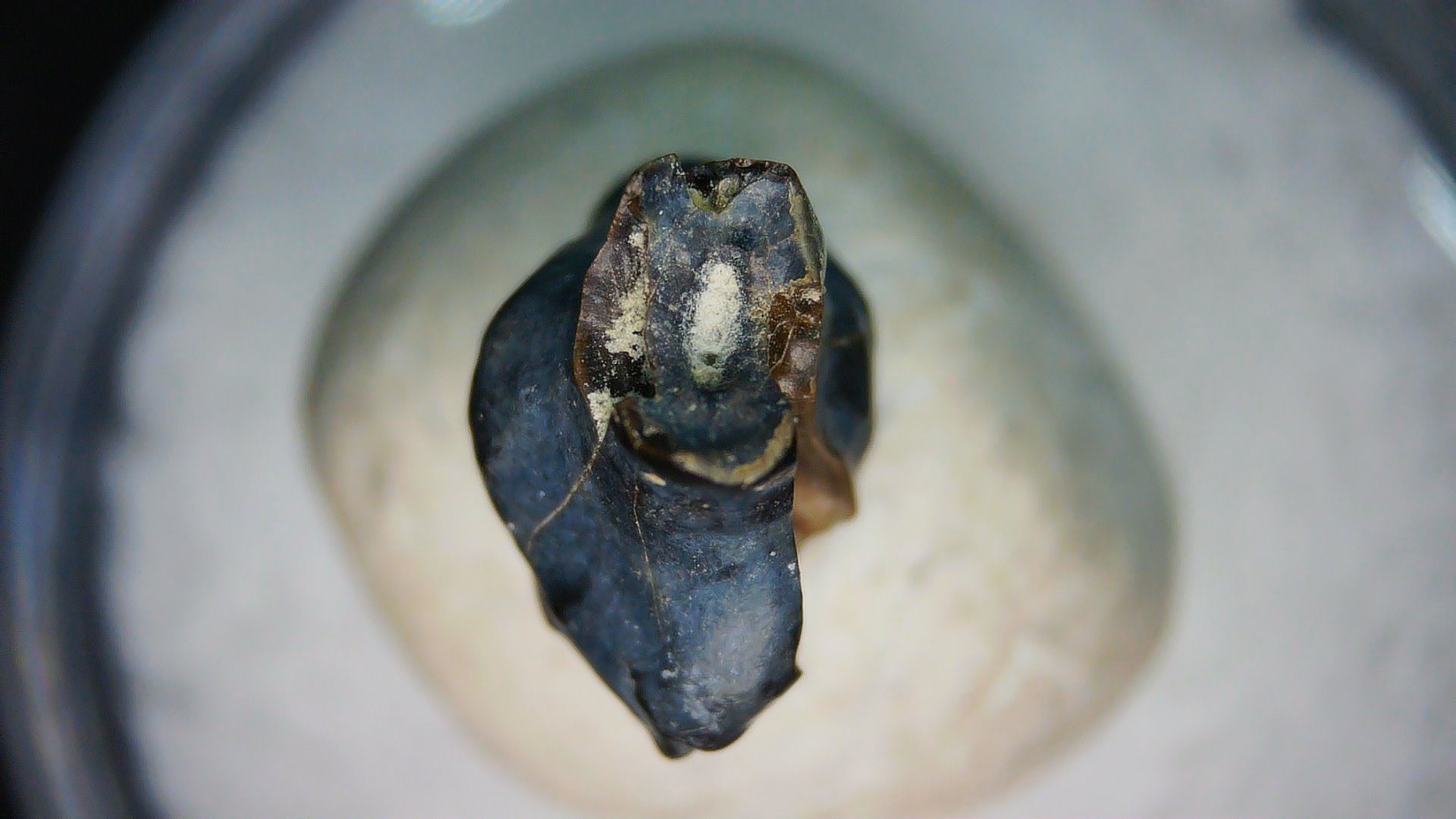 - This HARD TO FIND specimen measures .39″ wide as well as .52″ tall. In addition, it will come displayed in a 1.25″ Gem Jar . There is a tiny sliver of enamel missing as shown in photo.