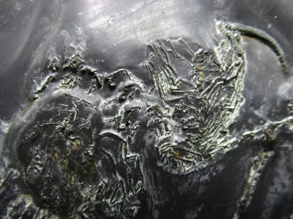 Hunsrück is one of the few marine Devonian Lagerstätte having soft tissue preservation, and in many cases fossils are coated by a pyritic surface layer. Preservation of soft tissues as fossils normally requires rapid burial in an anoxic (i.e., with little or no oxygen) sedimentary layer where the decomposition of the organic matter is significantly slowed. The pyritization found in Bundenbach fossils facilitated preservation and enhanced the inherent beauty of the fossils.