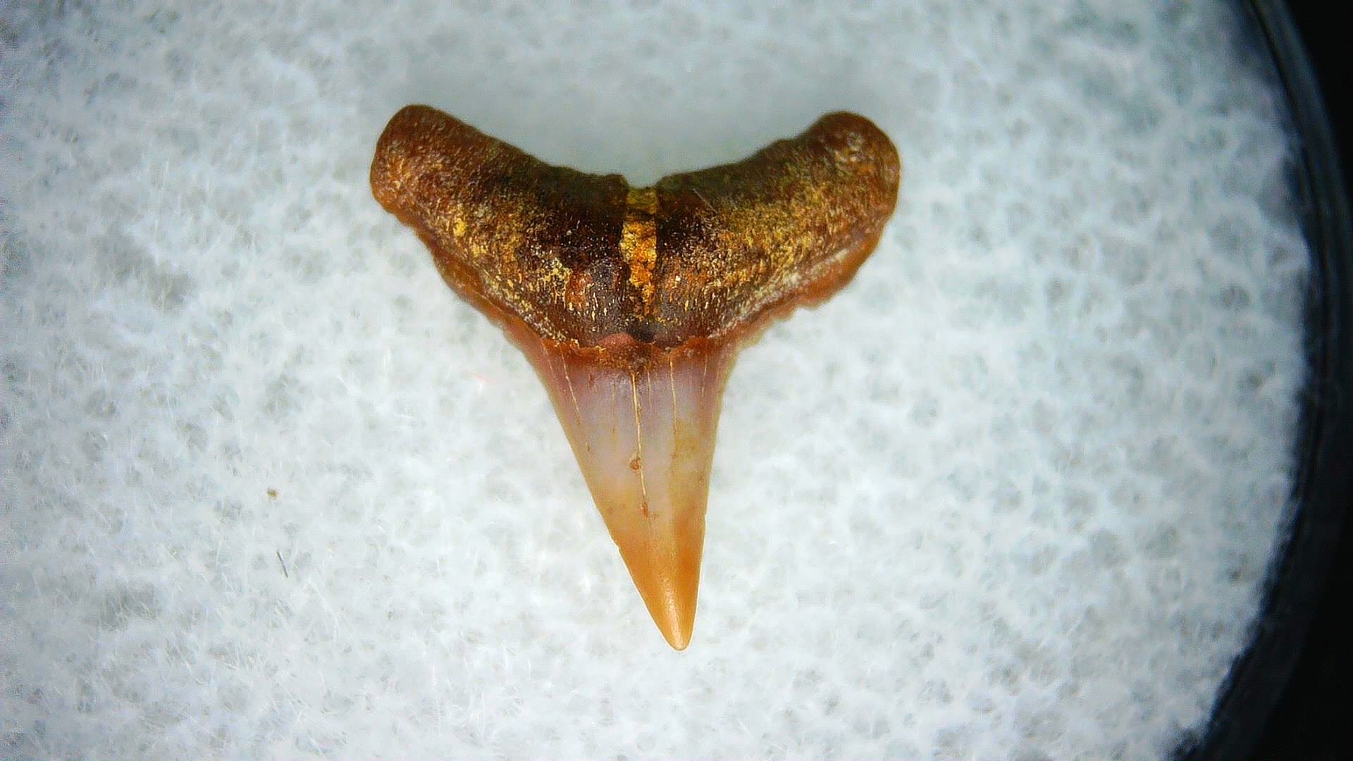 - This tiny specimen measures .35″ wide. In addition, your tooth will also come in a 1.25″ Gem Jar