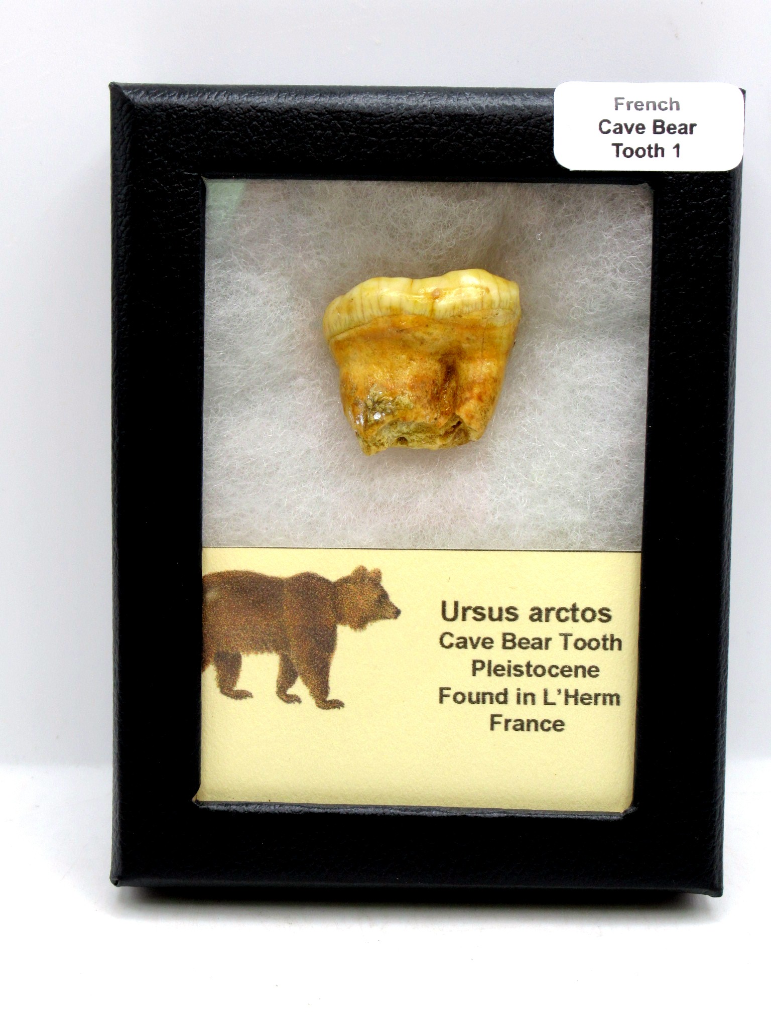 - This RARE Cave Bear Tooth measures 1.10″ long and in addition it will come in a 3.25″ x 4.25″ Riker Mount