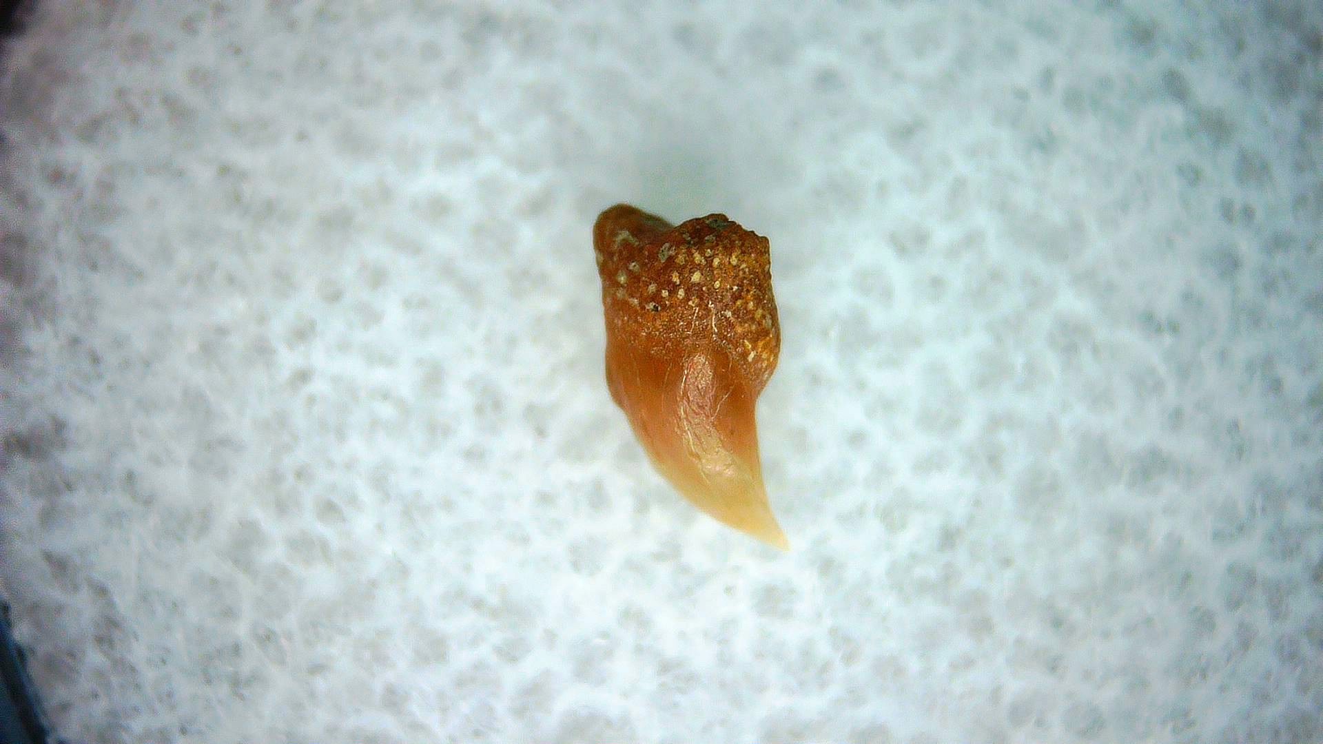 • This tiny specimen measures .23″ long.  In addition, your tooth will also come in a 1.25″ Gem Jar