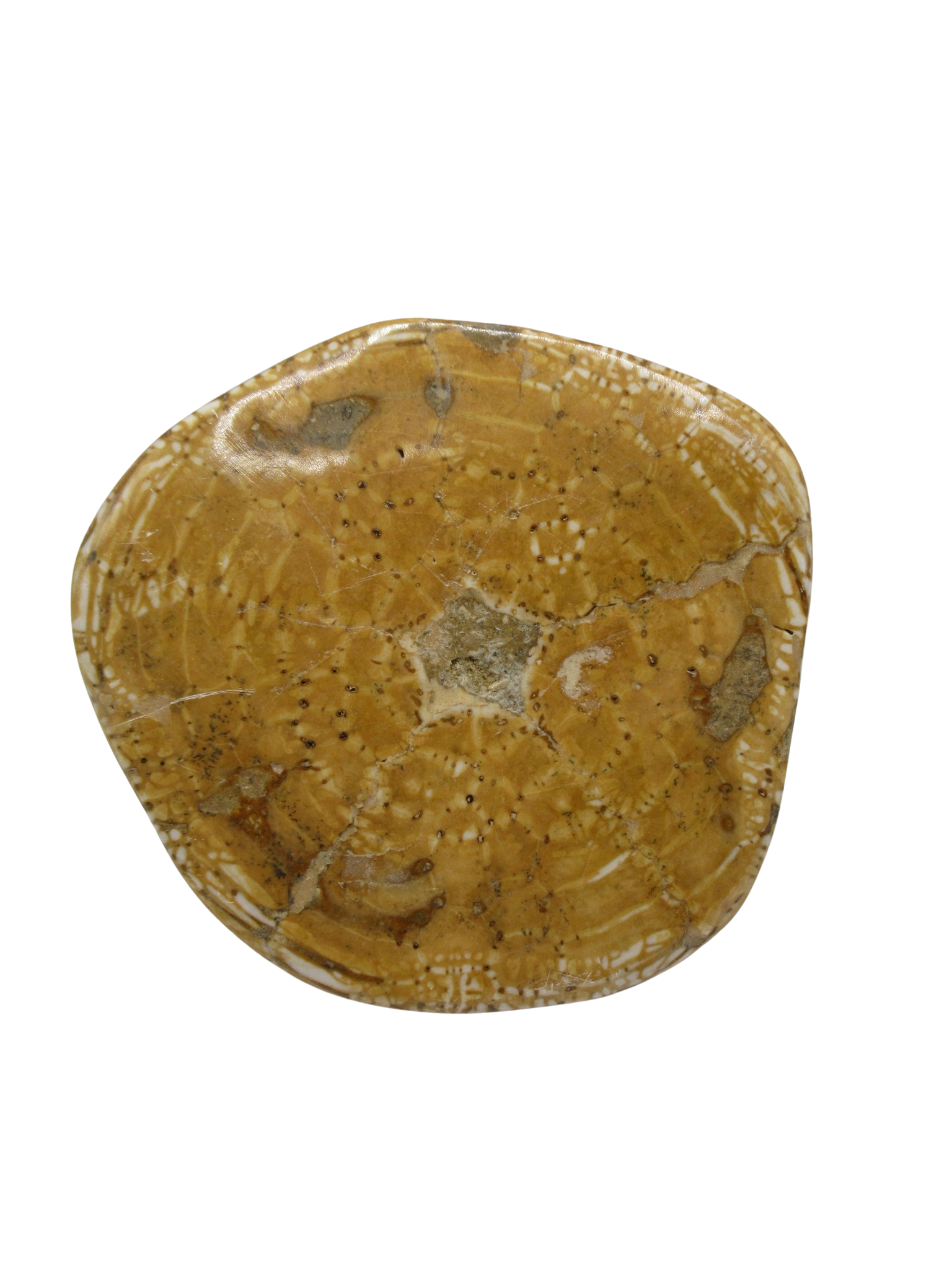 - This polished 3-D giant echinoid measures 3.25″ tall as well as 4.90″ wide. In addition, it will come with an ID Label as well. Finally, 100% Guaranteed Genuine