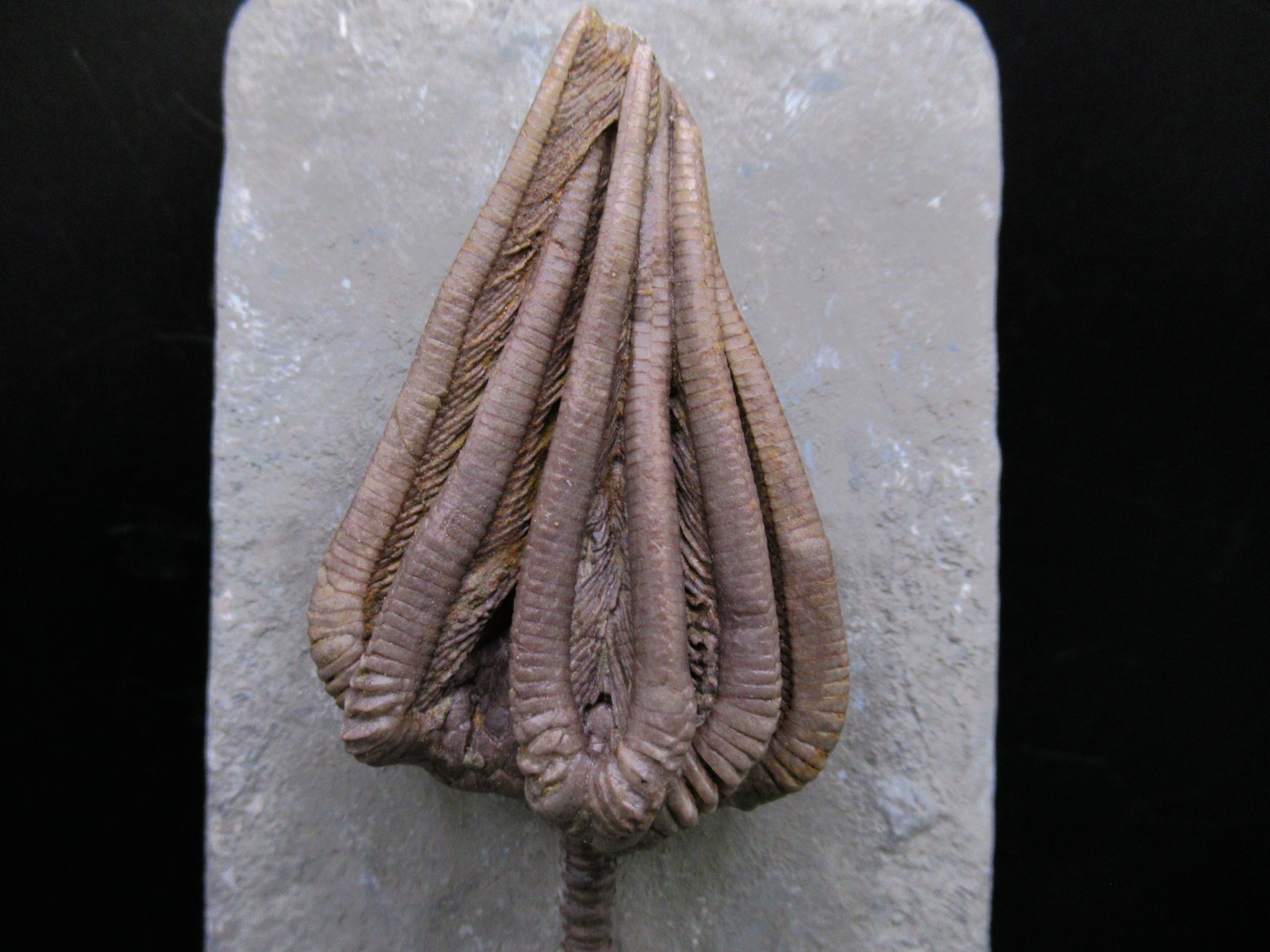 Mississippian Age crinoids from Crawfordsville, Indiana, are known worldwide for their completeness, abundance, comparatively large size, and extraordinary aesthetic appeal.