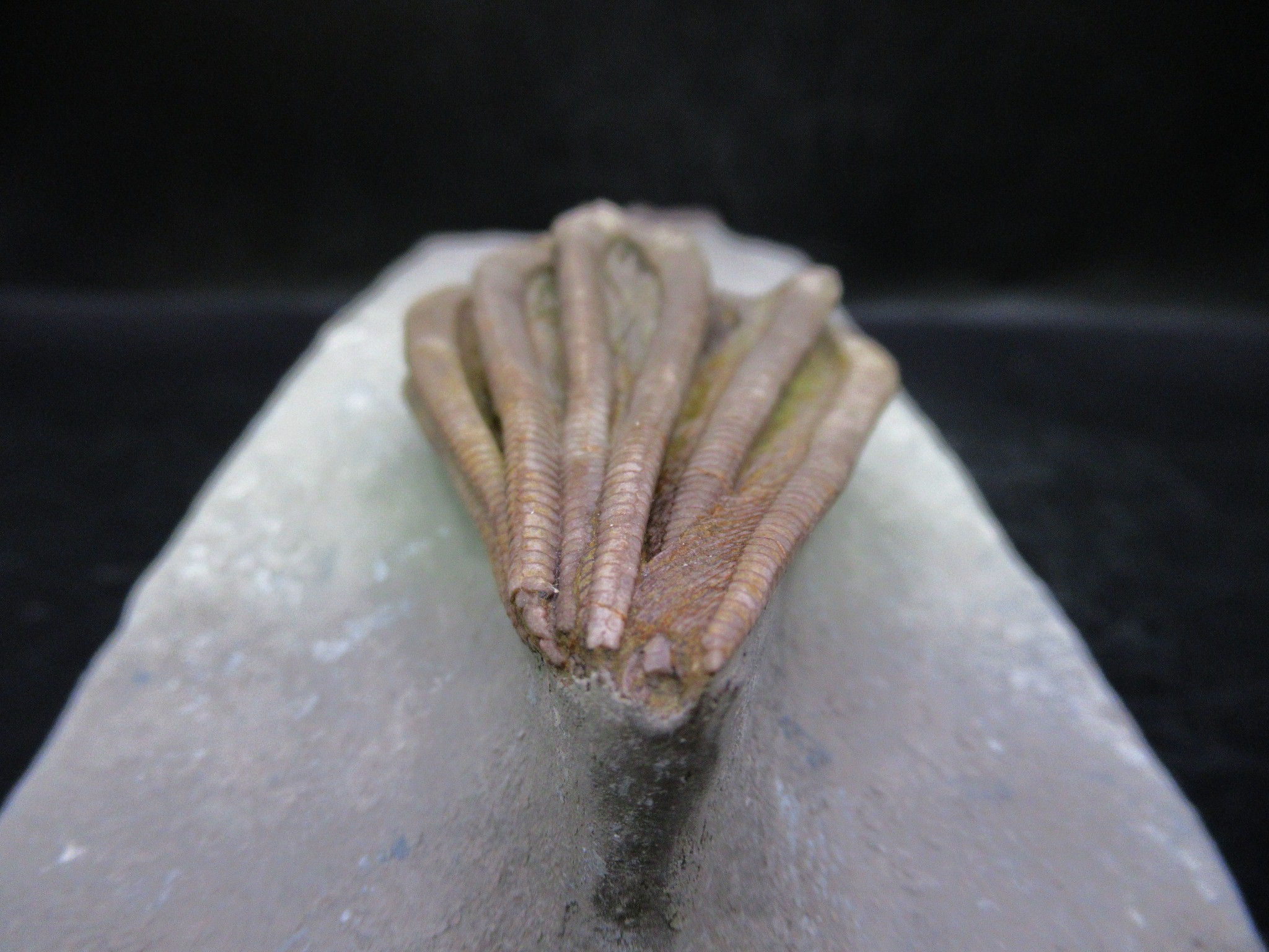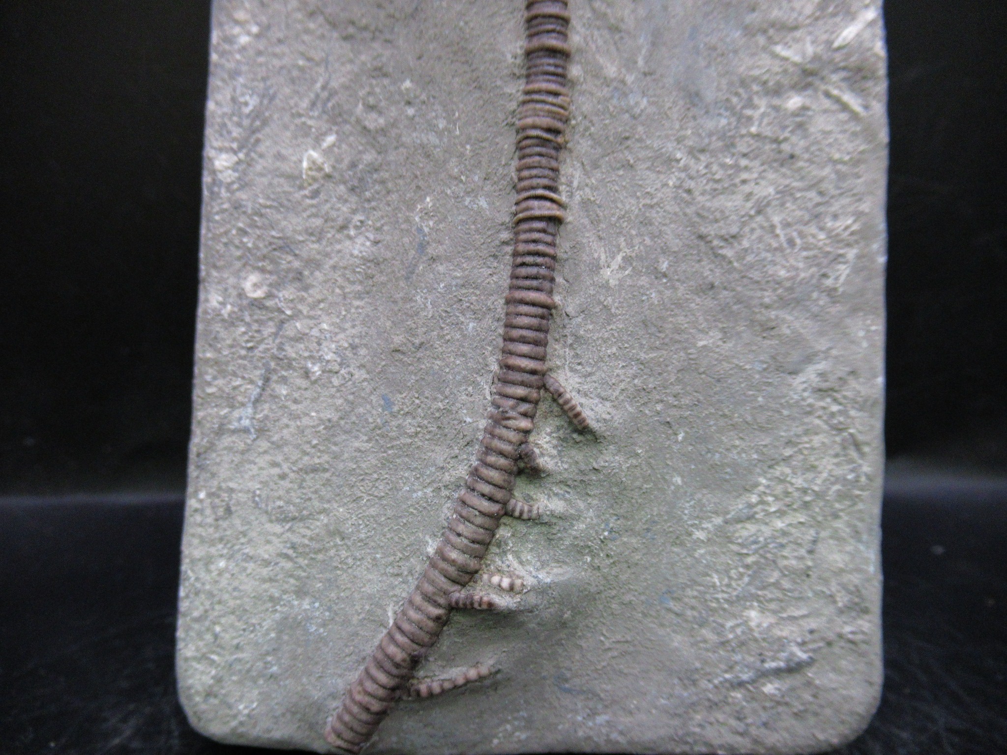 Crawfordsville Indiana is known for its spectacular crinoid faunal assemblage. There are more than 60 species of crinoids among more than 40 genera found in the Crawfordsville area. Seafloor conditions in the Crawfordsville area were obviously very favorable to the proliferation of crinoids, an environment that had both shallow water conditions and an influx of silt from a neighboring delta.