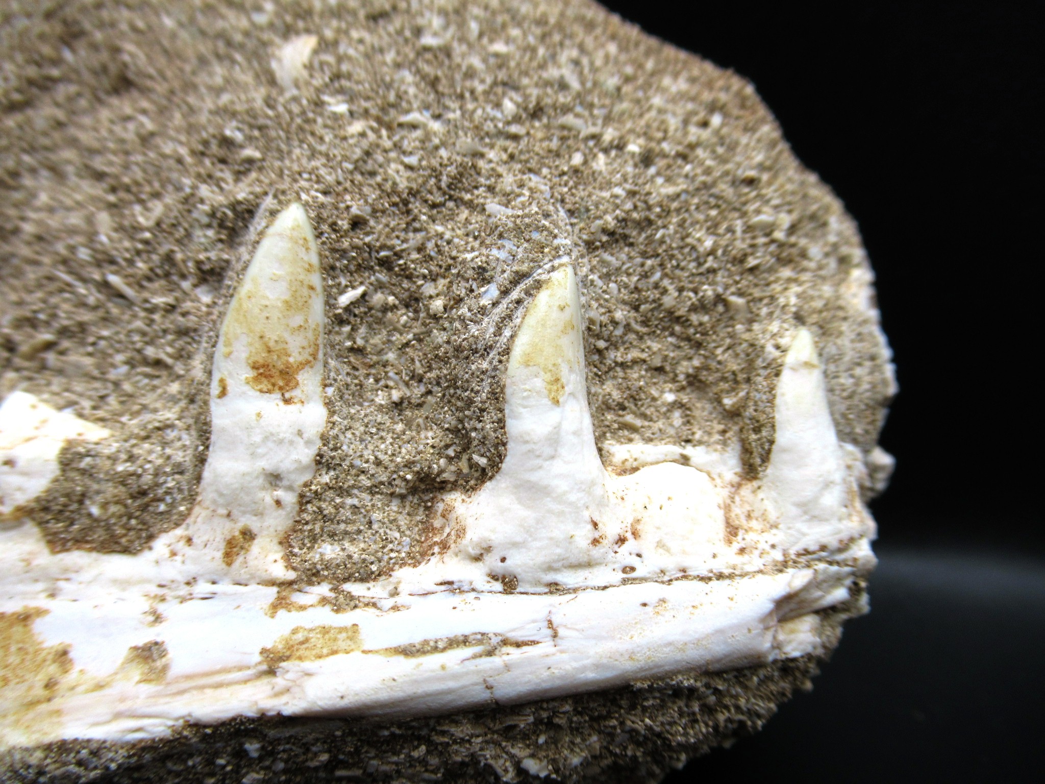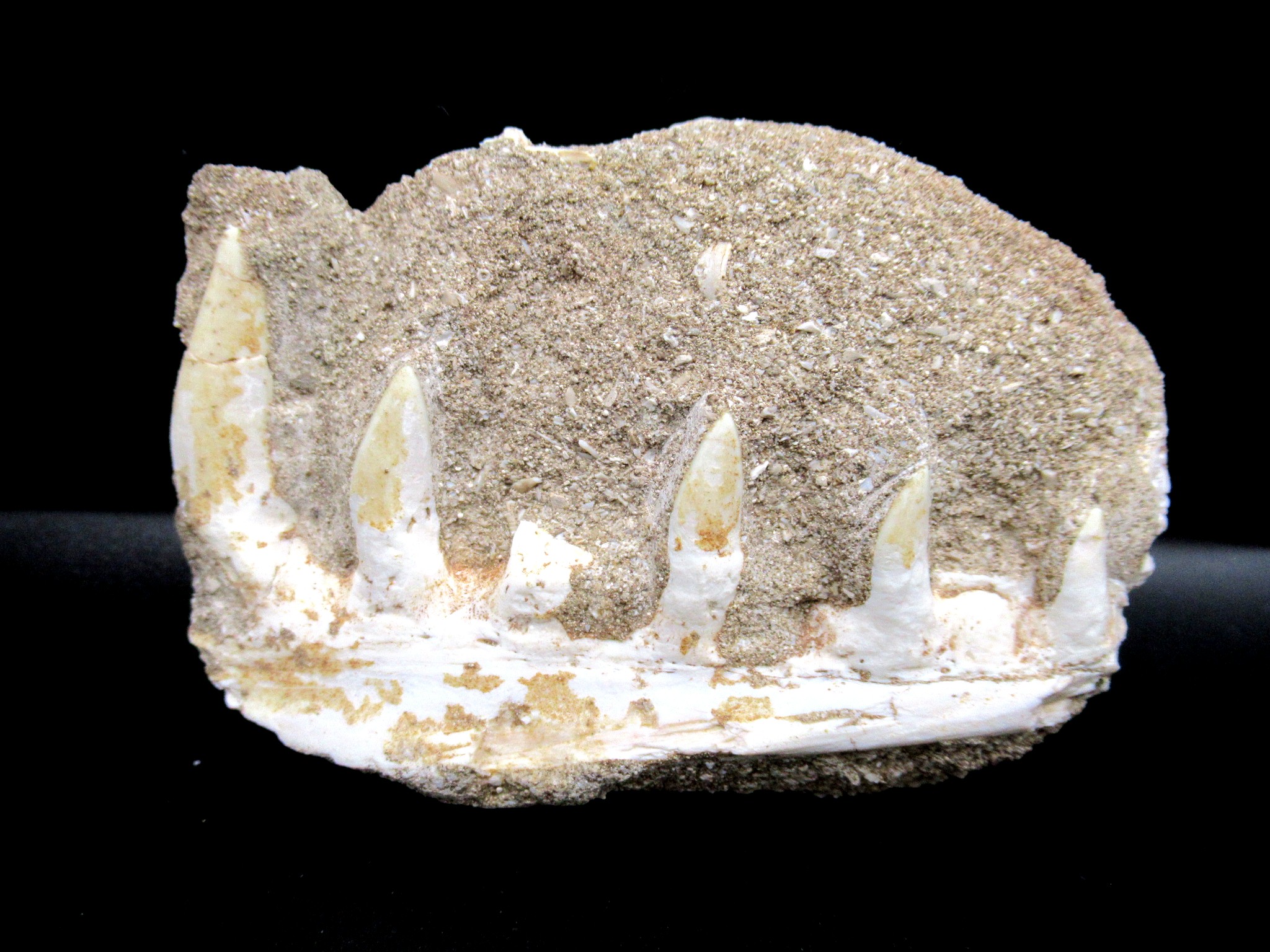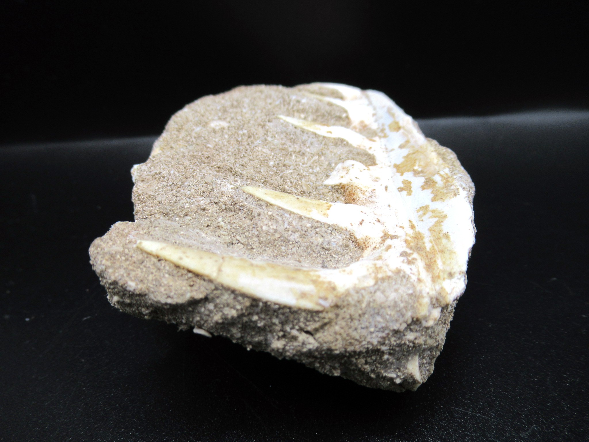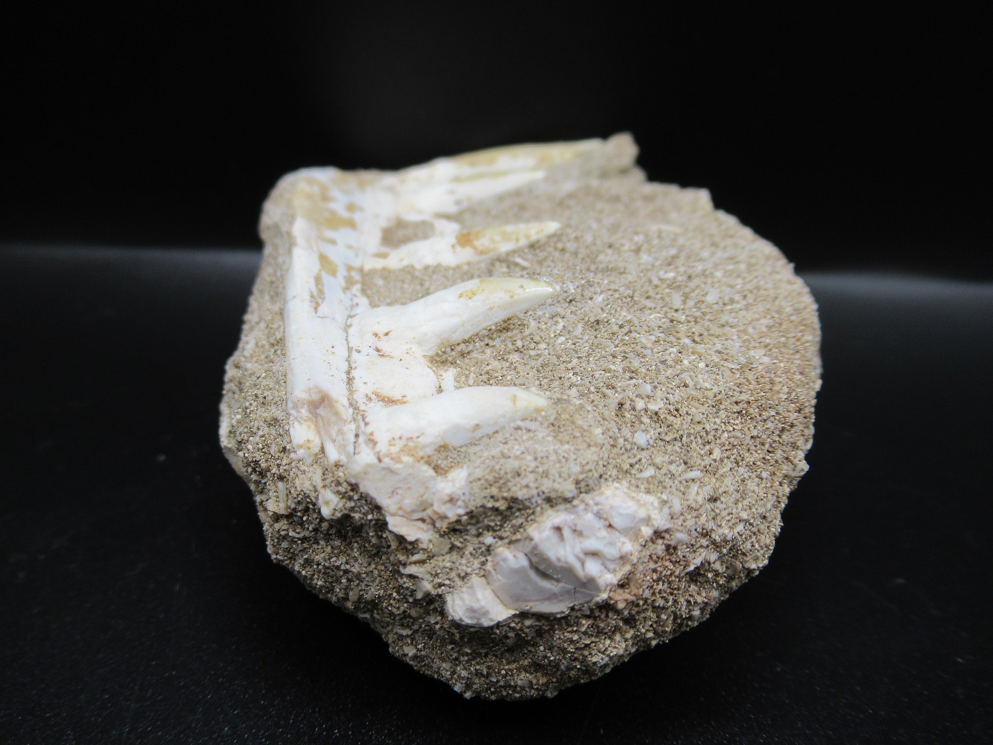Enchodus is an extinct genus of aulopiform ray-finned fish related to lancetfish and lizardfish. Species of Enchodus flourished during the Late Cretaceous, and survived the Cretaceous–Paleogene extinction event, persisting into the late Eocene. Enchodus species were small to medium in size. One of the genus’ most notable attributes are the large “fangs” at the front of the upper and lower jaws and on the palatine bones, leading to its misleading nickname among fossil hunters and paleoichthyologists, “the saber-toothed herring”. These fangs, along with a long sleek body and large eyes, suggest Enchodus was a predatory species.