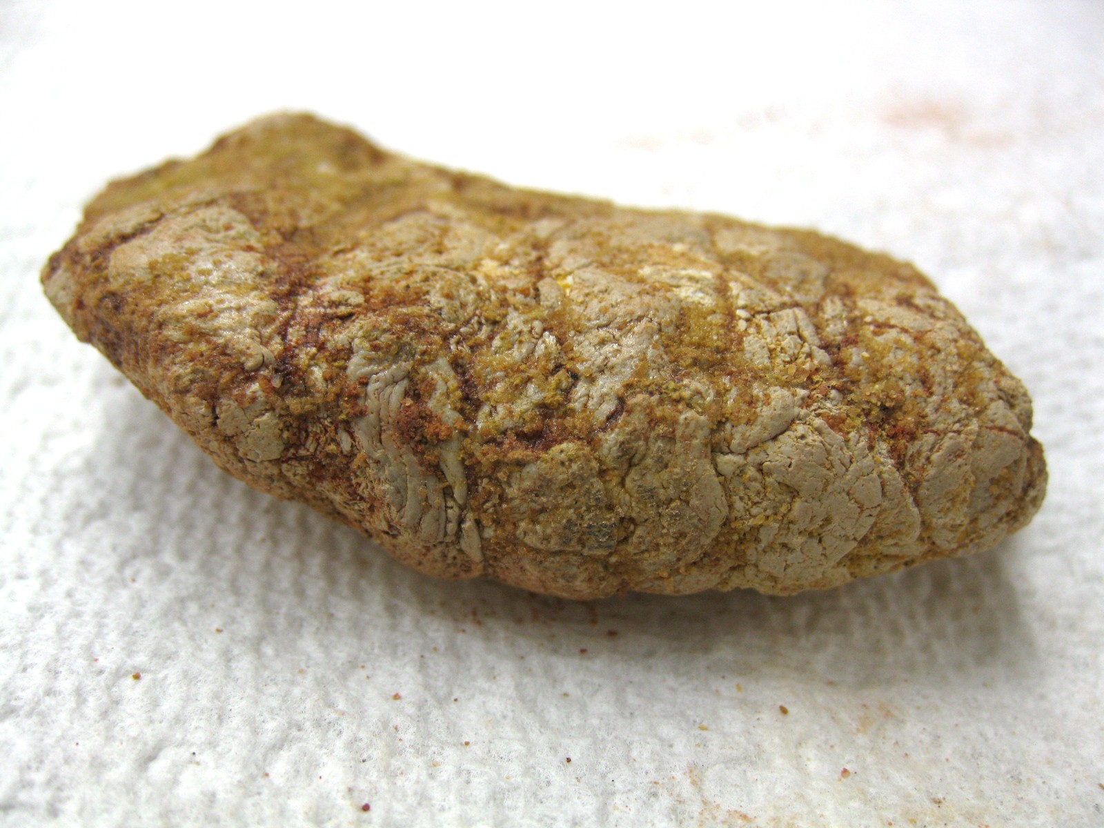 A coprolite is fossilized feces. Coprolites are classified as trace fossils as opposed to body fossils, as they give evidence for the animal’s behaviour (in this case, diet) rather than morphology.   They were first described by William Buckland in 1829. Prior to this they were known as “fossil fir cones” and “bezoar stones”. They serve a valuable purpose in paleontology because they provide direct evidence of the predation and diet of extinct organisms.  Coprolites may range in size from a few millimetres to over 60 centimetres.    Like other fossils, coprolites have had much of their original composition replaced by mineral deposits such as silicates and calcium carbonates.