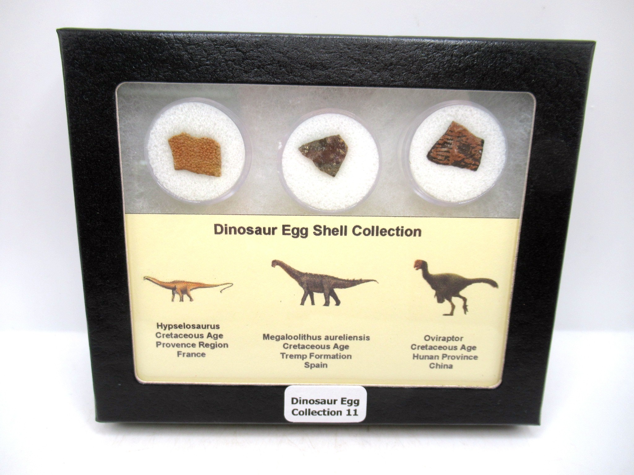 • Collection will contain a piece of the following Dinosaurs:  Oviraptor, Hypselosaurus, and Megaloolithius