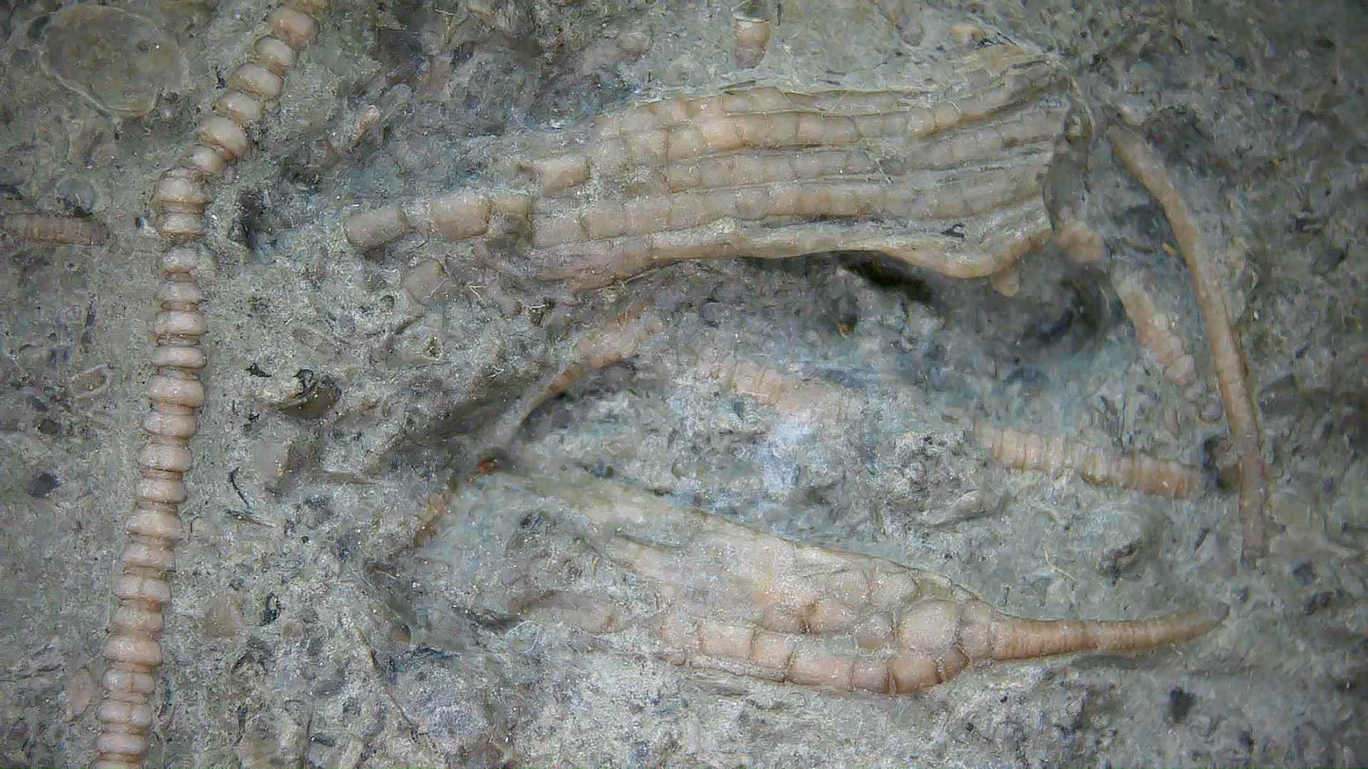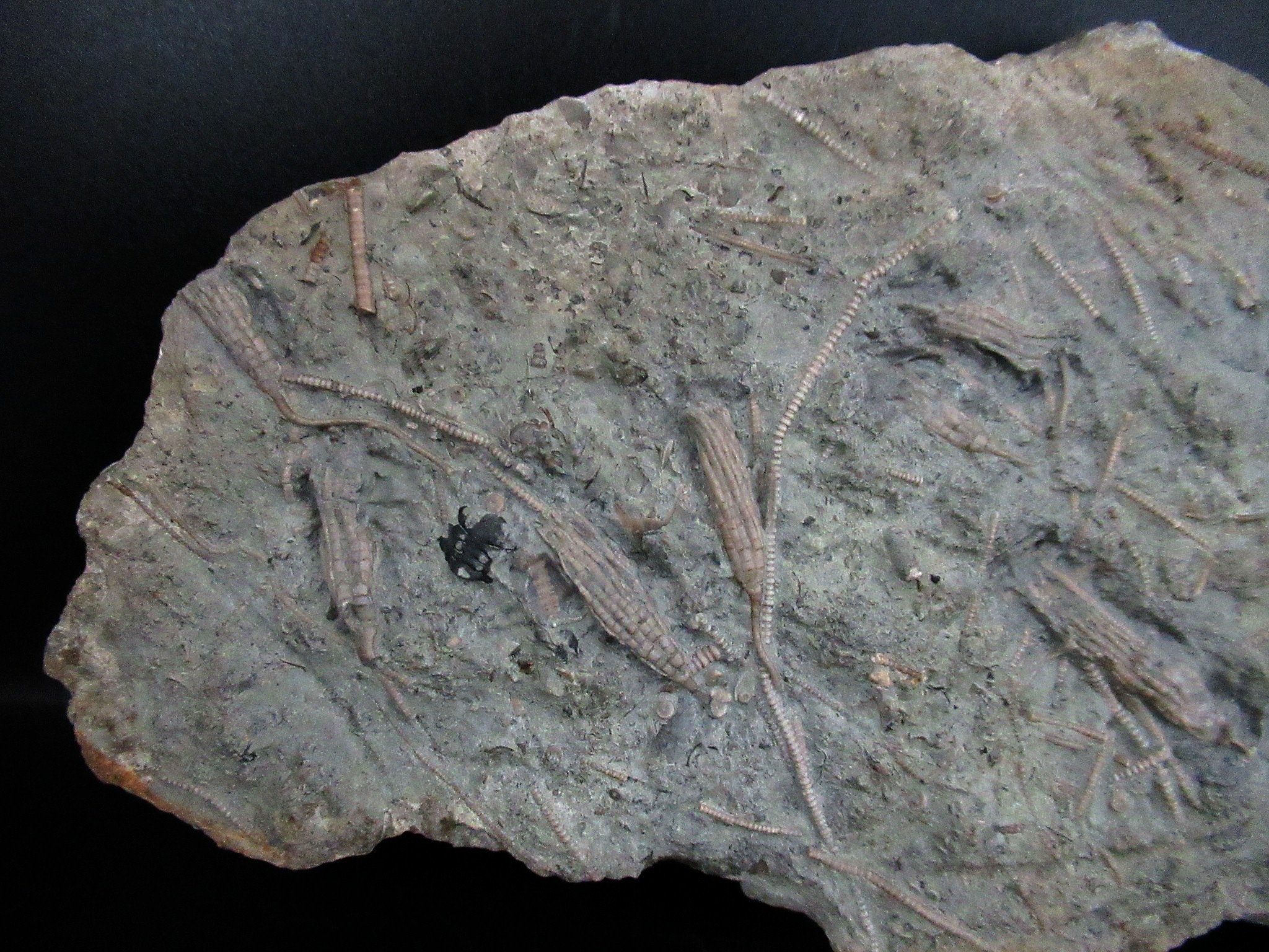 In the case of this group of crinoids they were present about 100 million years before the better known Mississippian Age Crawfordsville Crinoids. However, they are also beautifully detailed specimens. Because of their “flower like” appearance, crinoids have been referred to as “sea lilies”, however they are in fact animals. But Crinoids belong to the phylum Echinodermata.
