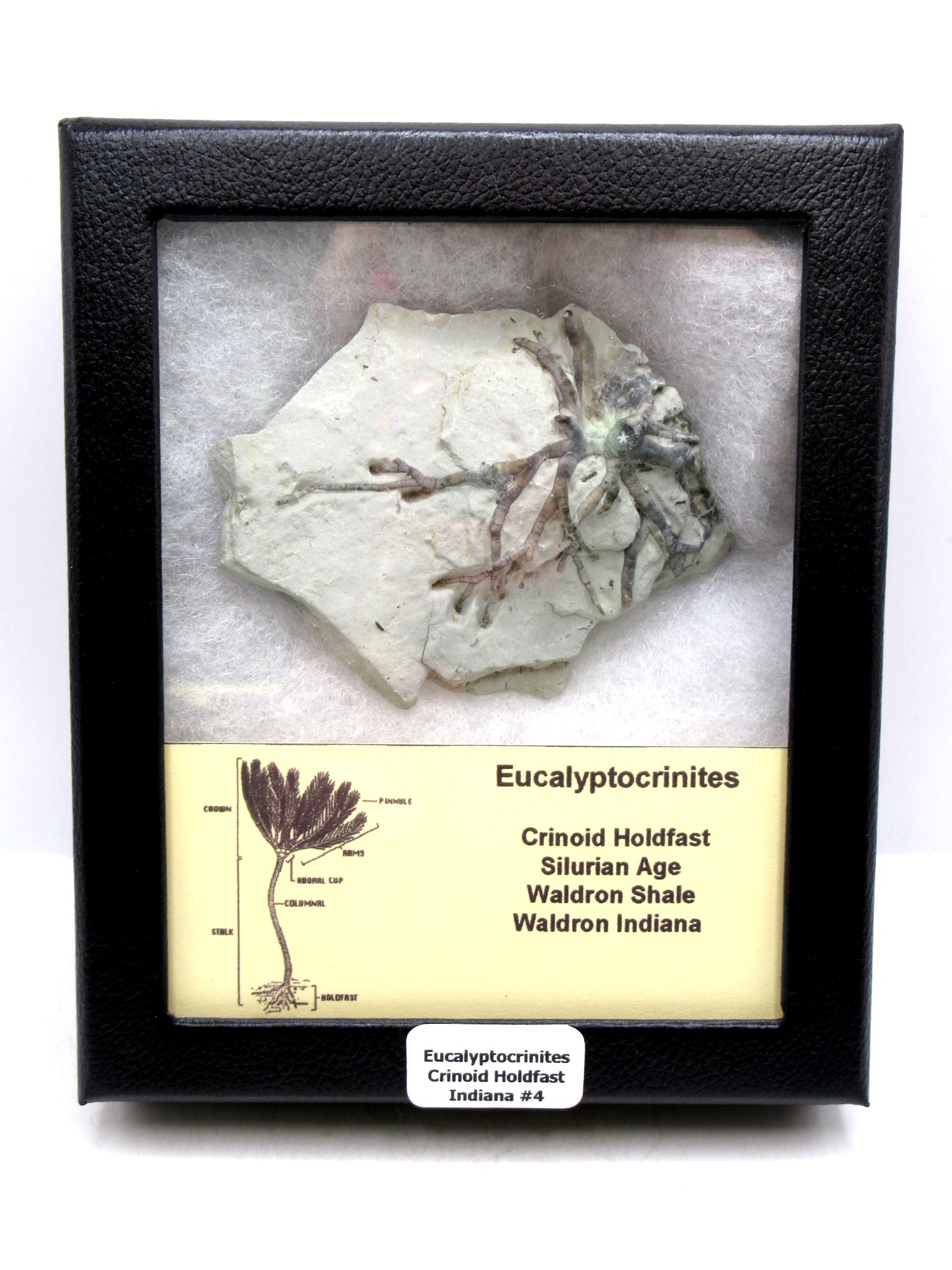 - This very detailed crinoid root measures 3.07″ long as well as 2.52″ wide. In addition, it will come in a 4.25″ x 5.25″ tall Riker Mount with an ID Label as well. Finally, 100% Guaranteed Genuine