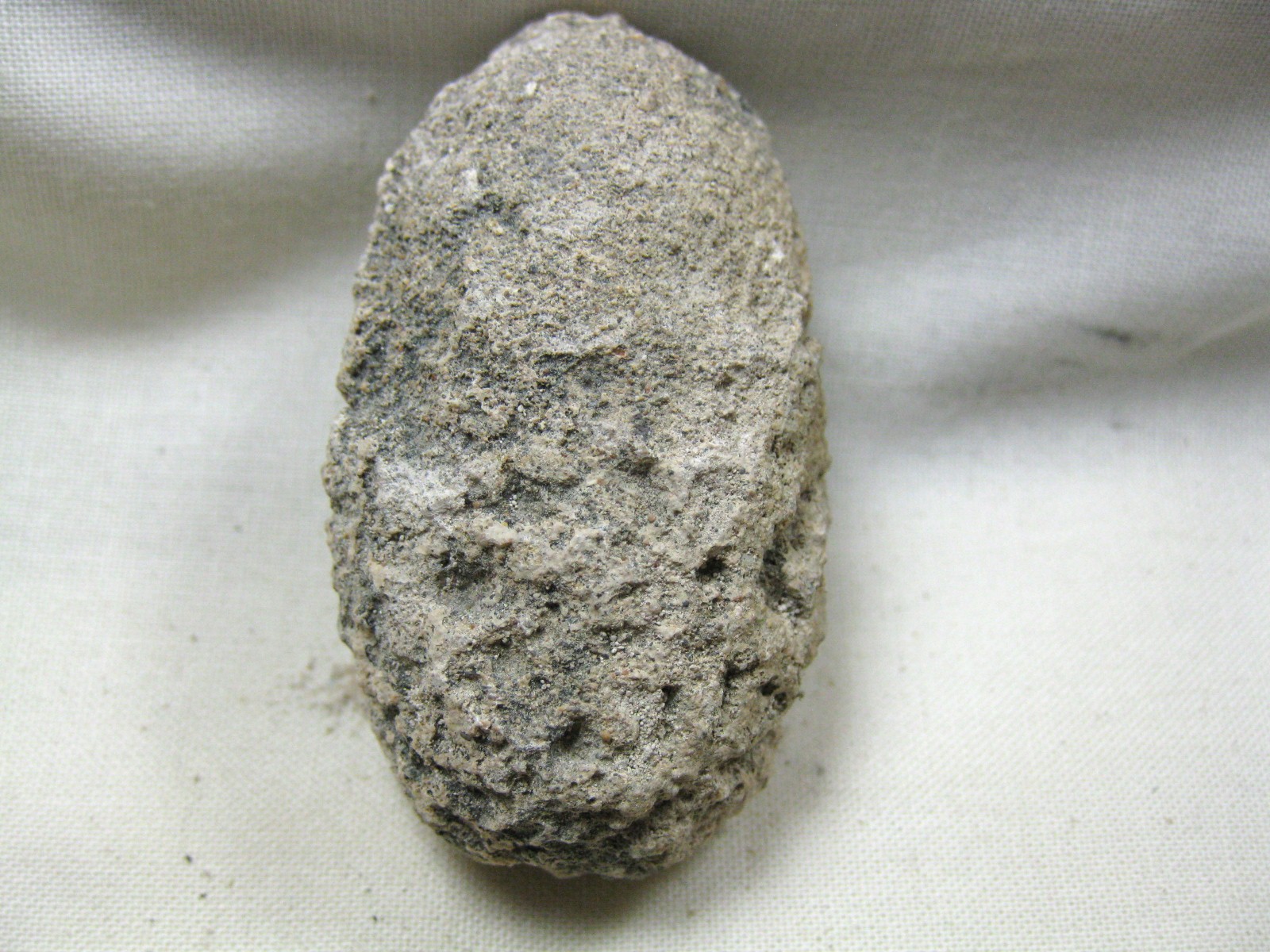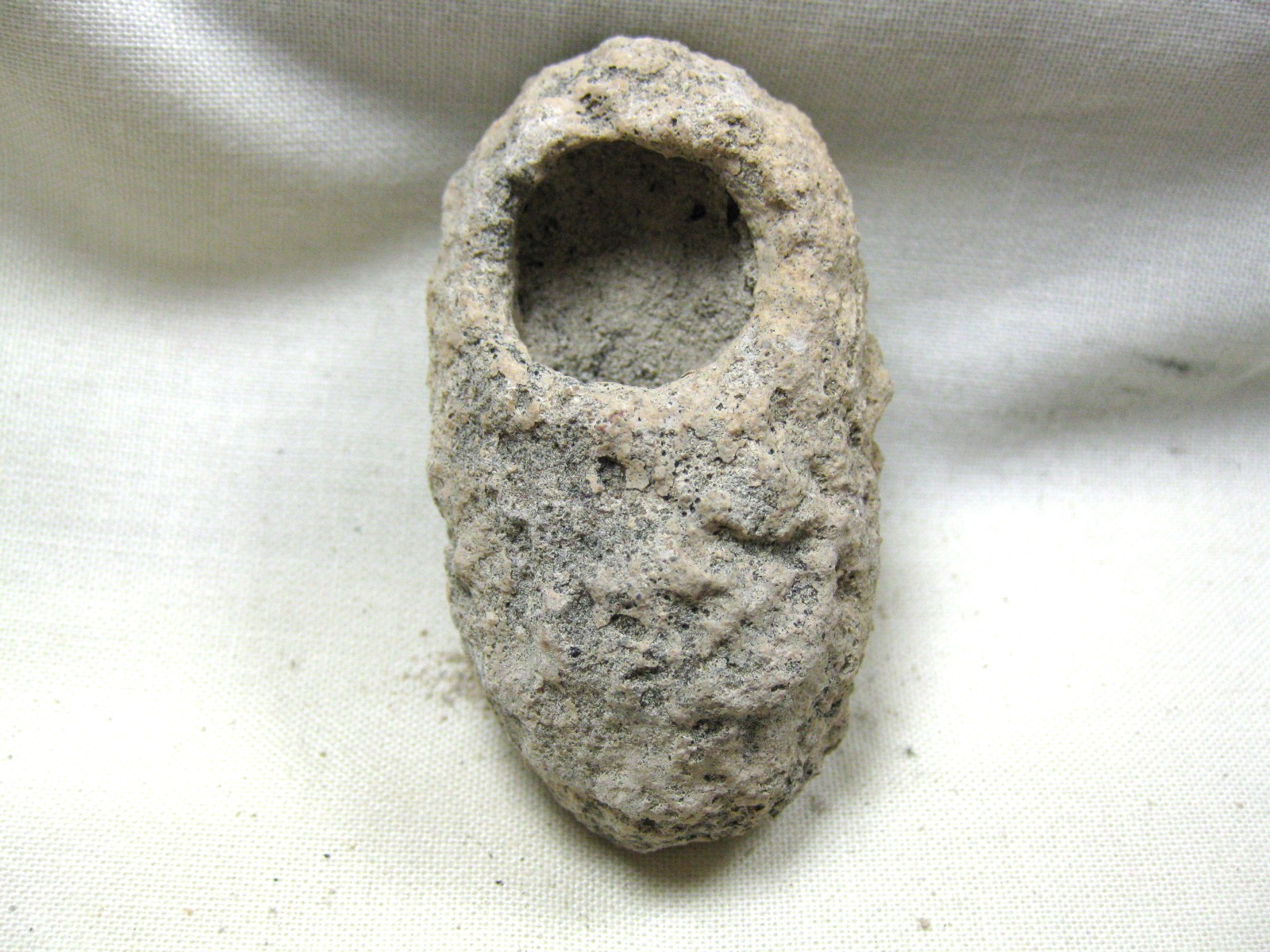 • These insect cocoons were found in the Holocene deposits of Australia.. they are believed to be from the Weevil, Leptopius duponti.  Analysis shows that these cocoons were made of sand or gravel with a secretion from the weevil larva.  The larva lived underground feeding on the roots or underground stems. When fully fed it prepared to pupate by making a chamber, or cocoon, where it underwent the change from larva to adult beetle. Instead of spinning a cocoon like other insects, the larva makes a cell in the earth by tamping the soil around it to form a hard wall, perhaps exuding a secretion which makes the soil or sand set like concrete. The larva entered the pupal stage which may have lasted for months. The new adult then pushed its way through the cell wall and burrowed to the surface