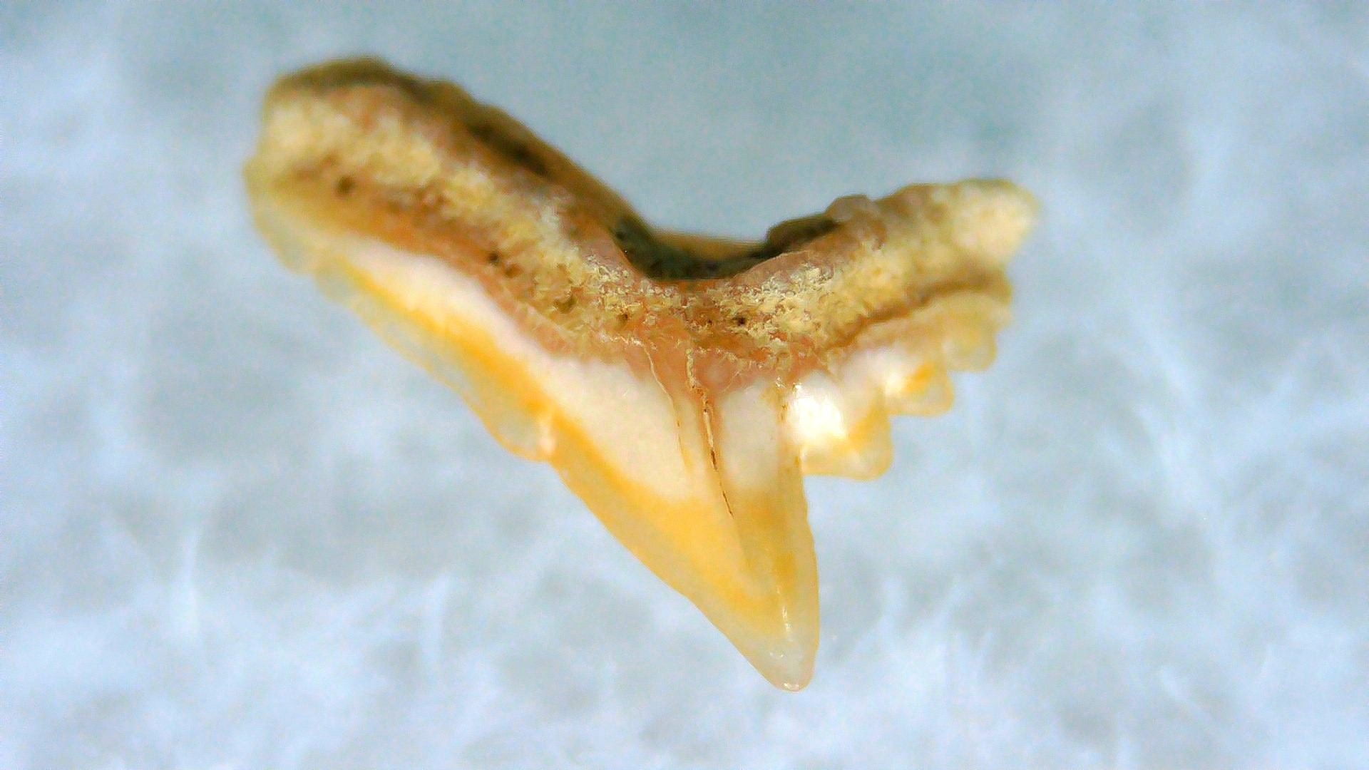 - This tiny specimen measures .12″ long. In addition, your tooth will also come in a 1.25″ Gem Jar