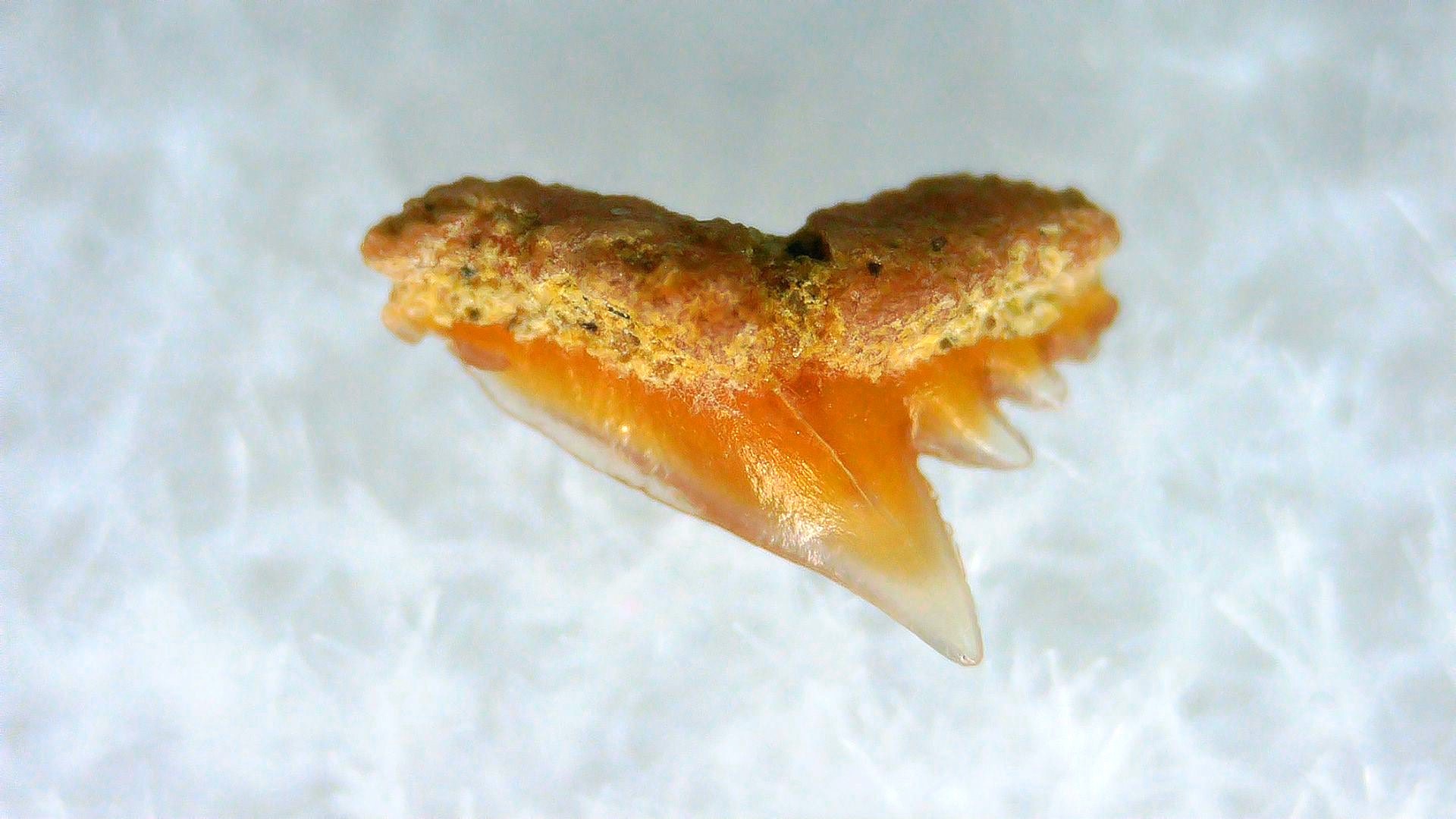 - This tiny specimen measures .12″ long. In addition, your tooth will also come in a 1.25″ Gem Jar