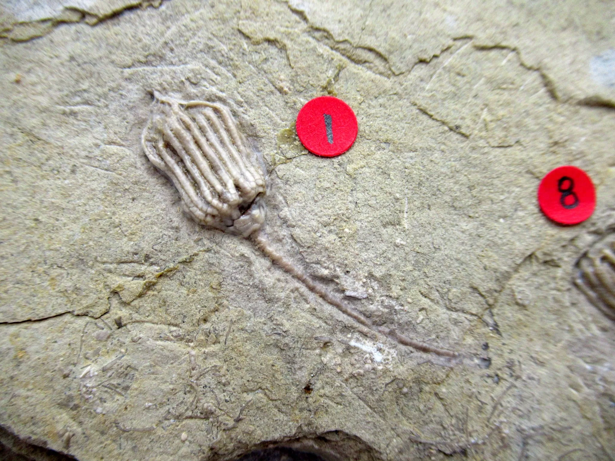 - The RED DOTS with Numbers are to identify the various Crinoids – SEE ID LIST FOR IDENTIFICATION
