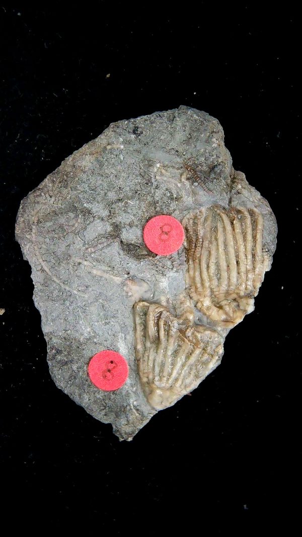 - The RED DOTS with Numbers are to identify the various Crinoids