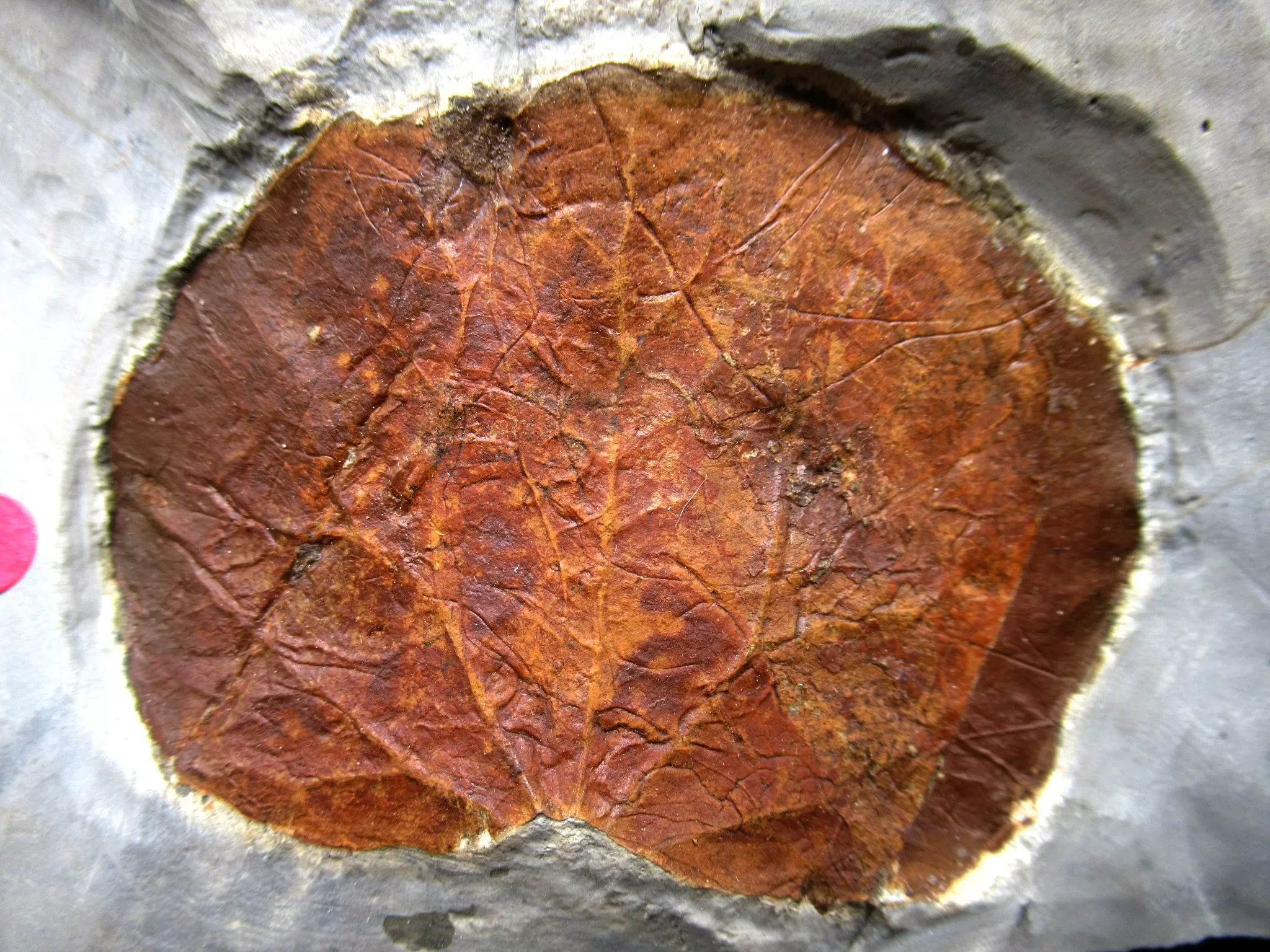 - The overall size of matrix measures approx. 4.81″ x 6.08″. The NATURAL COLOR of the leaf contrasts nicely with the color of the matrix. The leaf has had a very light coat of Vinac applied to protect the surface of the leaf.