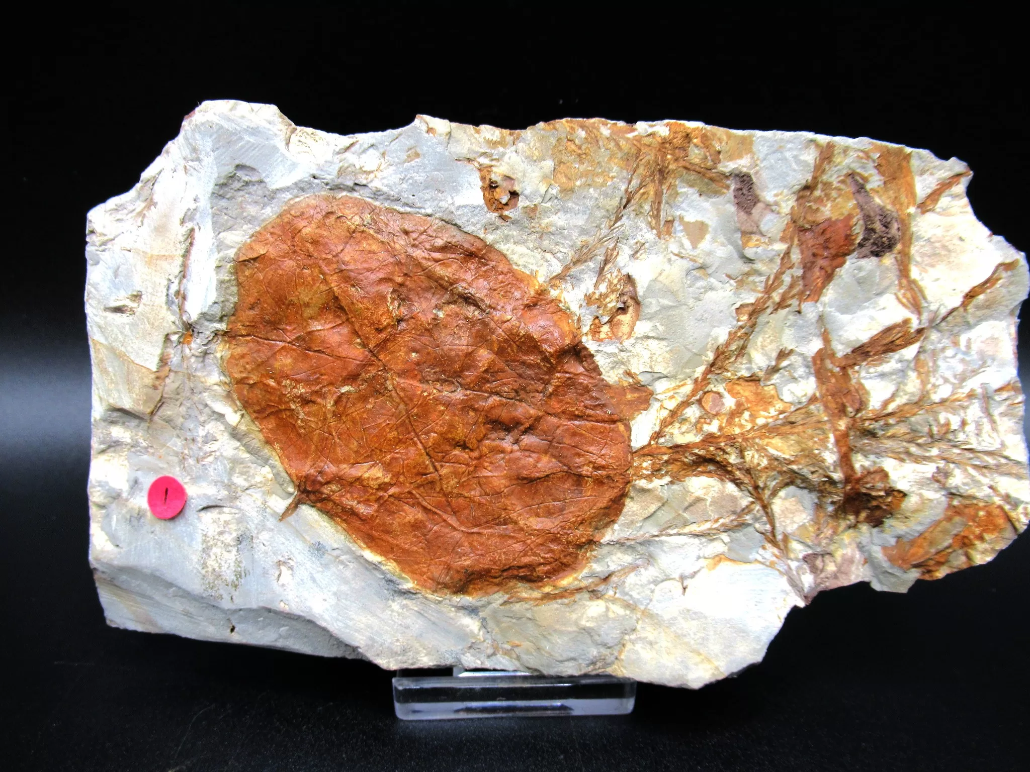 - The overall size of matrix measures approx. 3.24″ x 5.40″. The NATURAL COLOR of the leaf contrasts nicely with the color of the matrix. The leaf has had a very light coat of Vinac applied to protect the surface of the leaf.