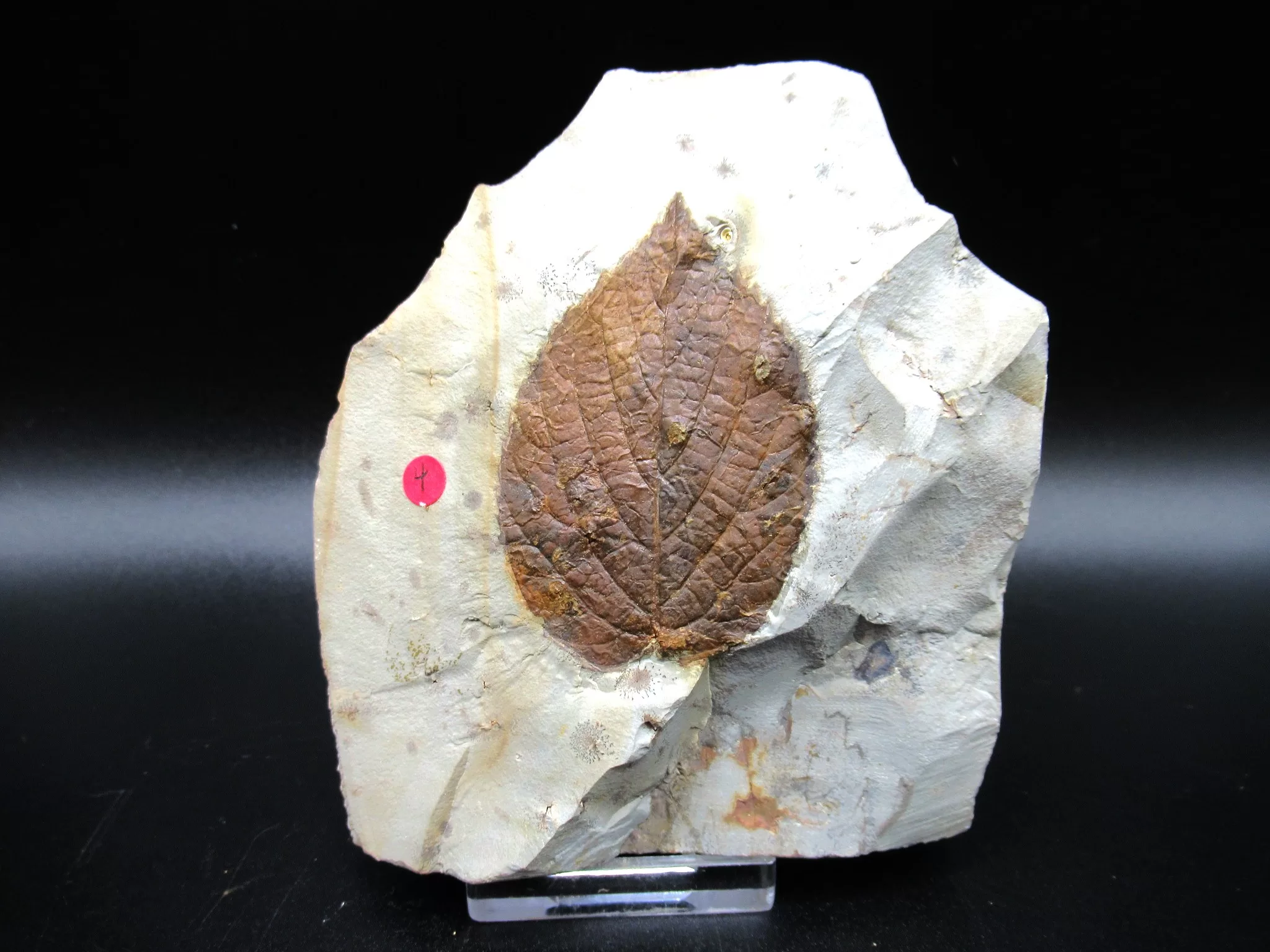 - The overall size of matrix measures approx. 3.4″ x 3.88″. The NATURAL COLOR of the leaf contrasts nicely with the color of the matrix. The leaf has had a very light coat of Vinac applied to protect the surface of the leaf.