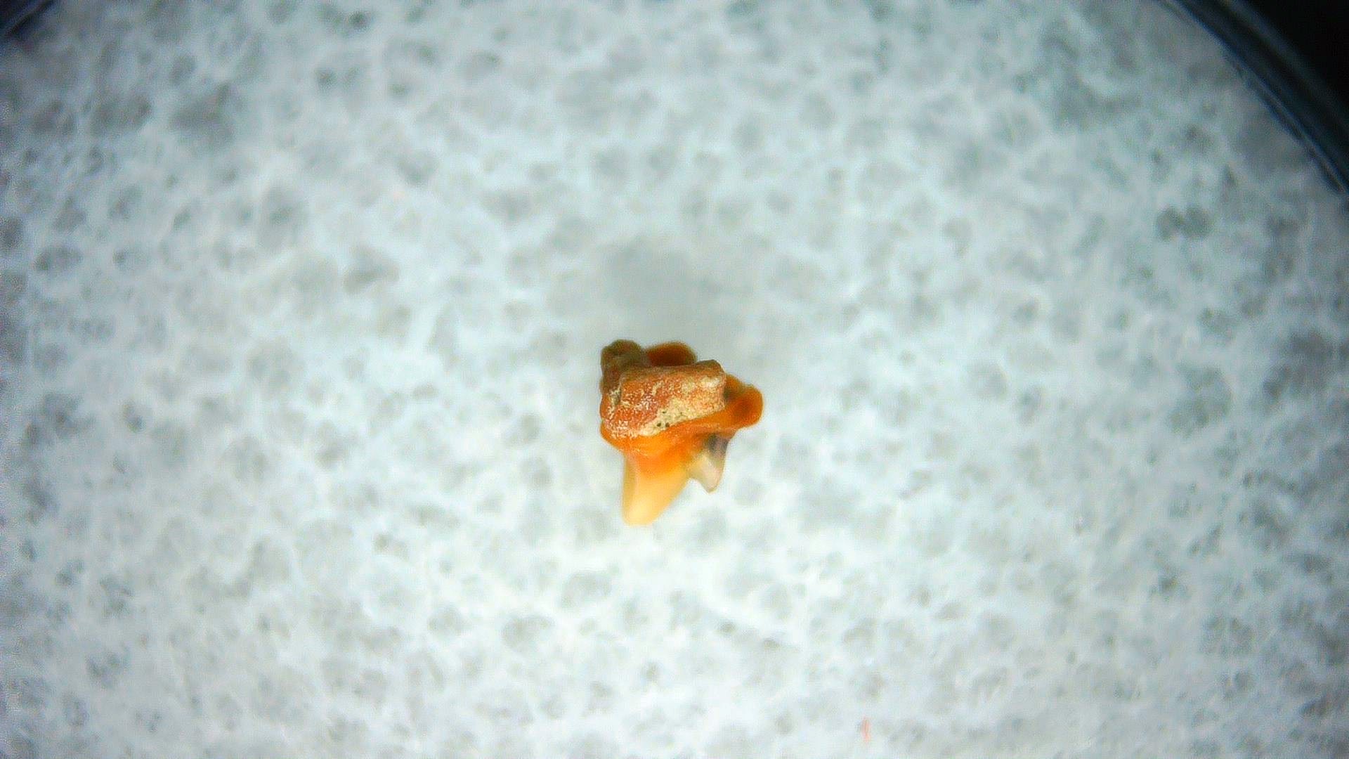 • This tiny specimen measures .11″ long.  In addition, your tooth will also come in a 1.25″ Gem Jar
