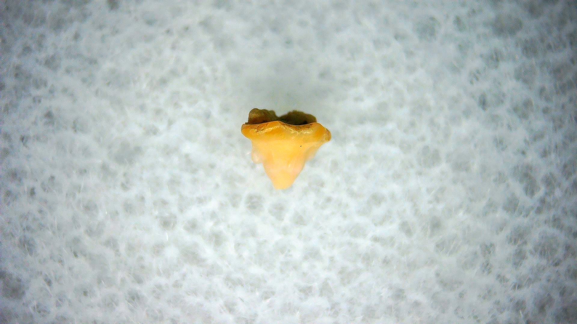 - This tiny specimen measures .11″ long. In addition, your tooth will also come in a 1.25″ Gem Jar