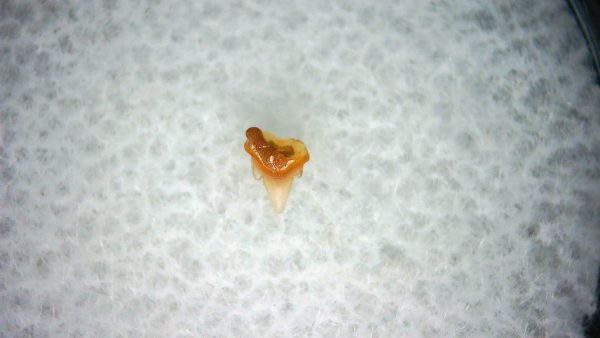 • This tiny specimen measures .11″ long.  In addition, your tooth will also come in a 1.25″ Gem Jar