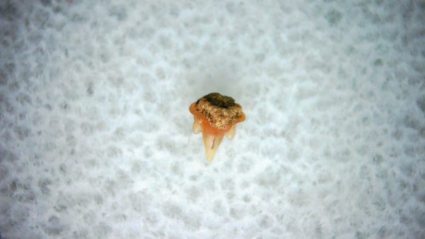 • This tiny specimen measures .09″ long.  In addition, your tooth will also come in a 1.25″ Gem Jar