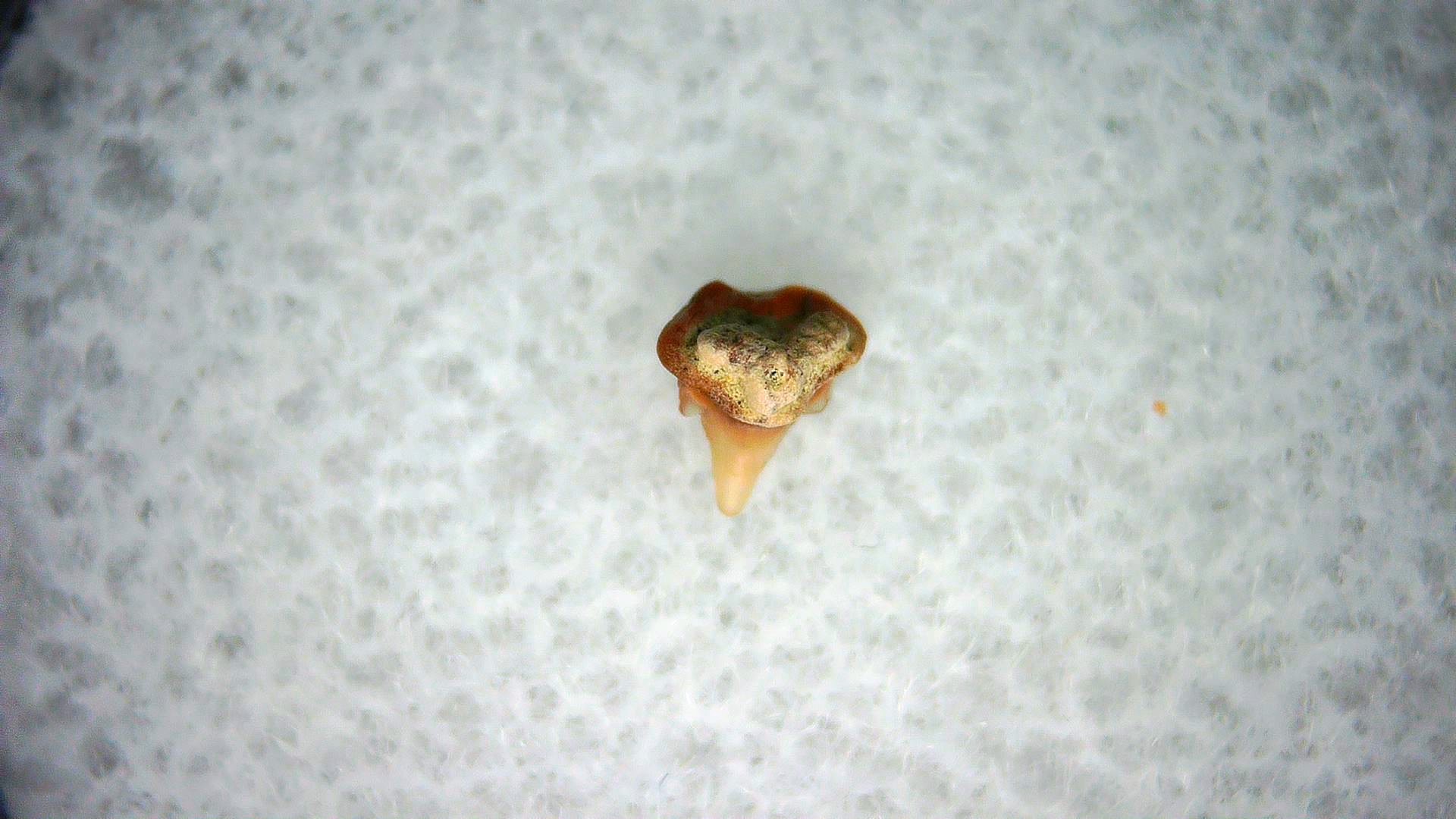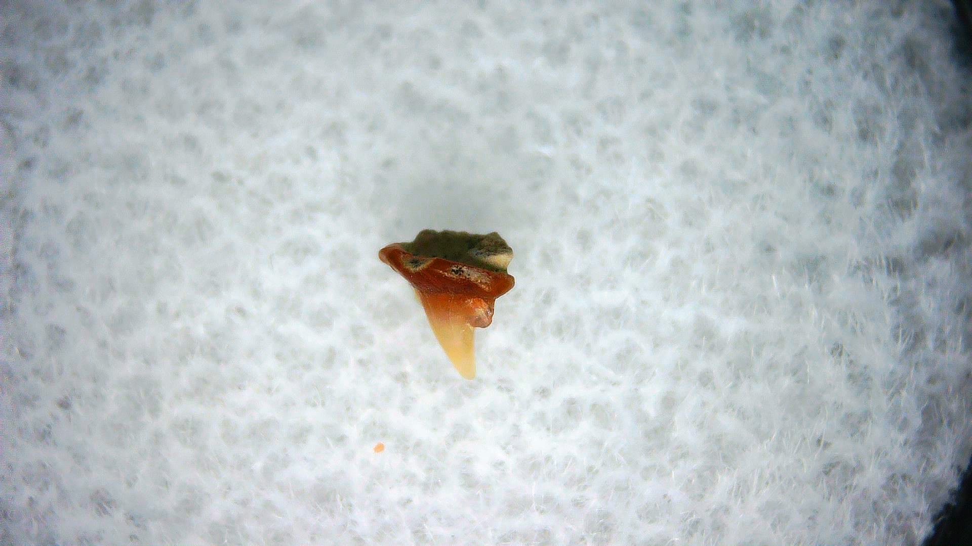 - This tiny specimen measures .09″ long. In addition, your tooth will also come in a 1.25″ Gem Jar