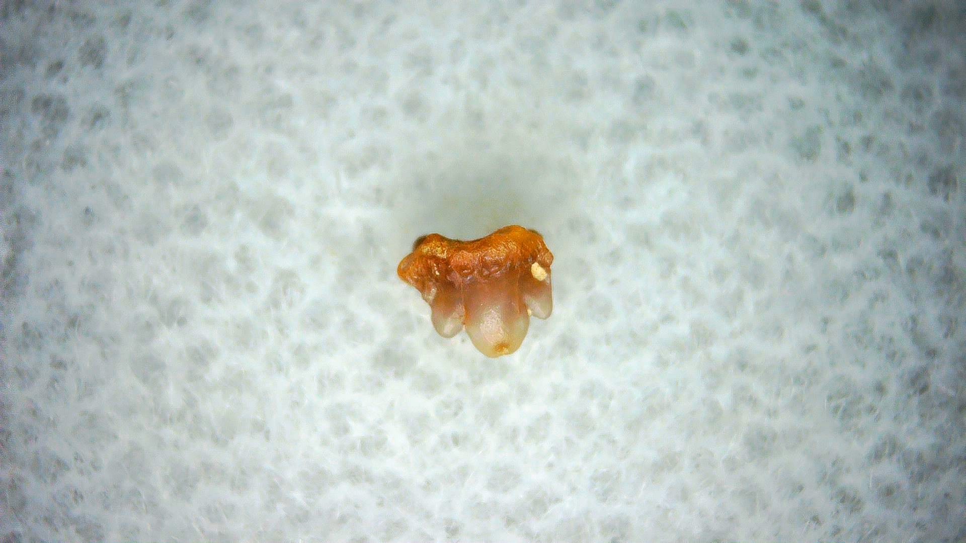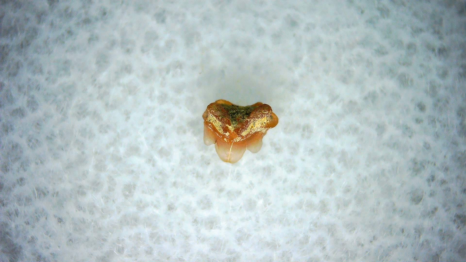 - This tiny specimen measures .12″ long. In addition, your tooth will also come in a 1.25″ Gem Jar