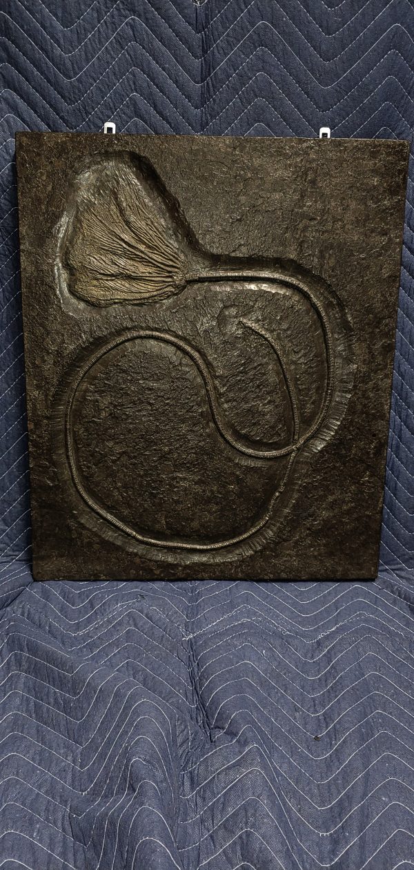 - This plate measures approx. 18″ wide x 22″ tall. In addition, the crinoid itself fills the plate. Finally, there are built-in hanging hooks on the back to facilitate hanging on a wall