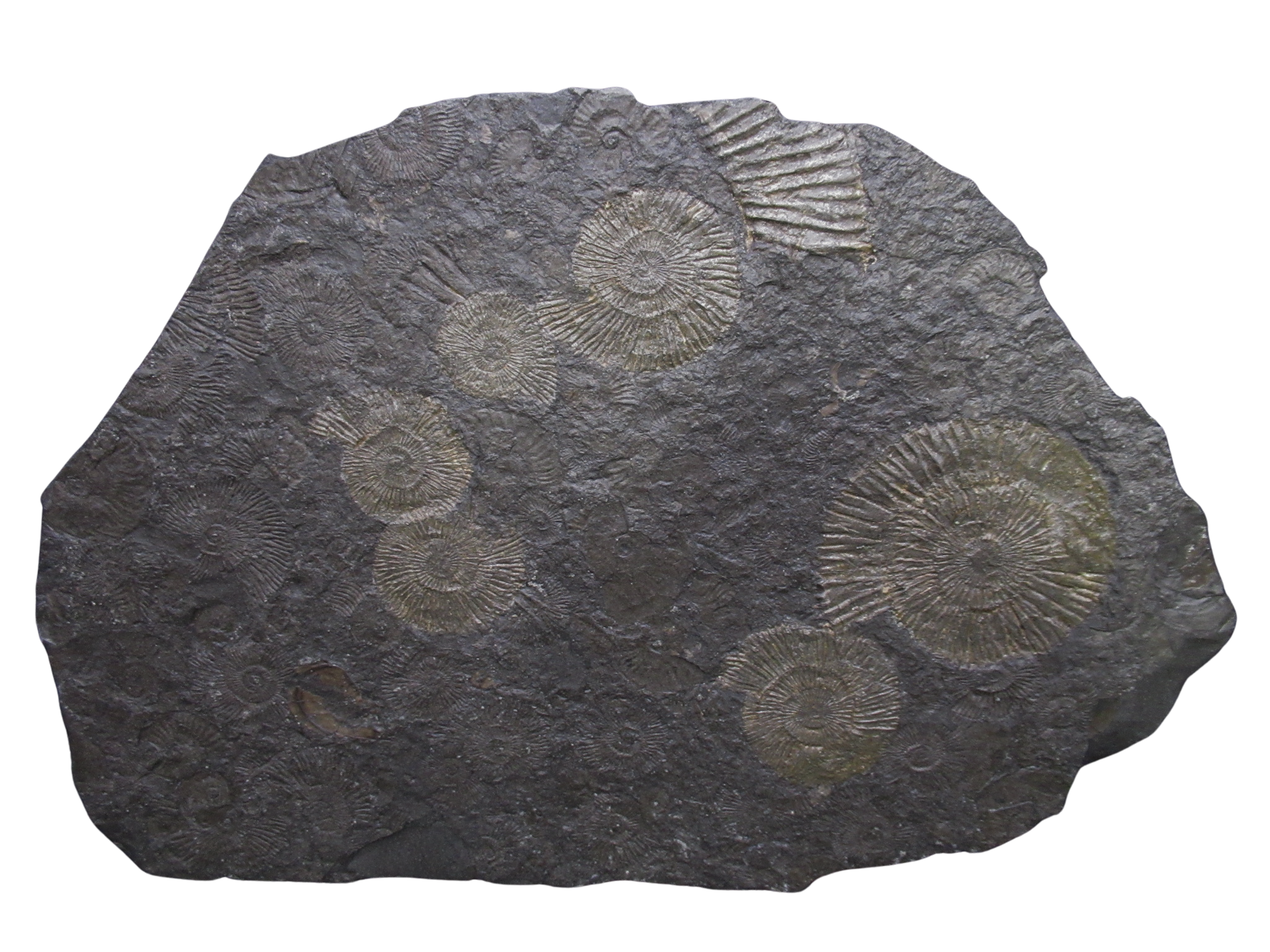 • As a result of Crushing Tectonic Pressures, the Ammonite was compressed and preserved on the black oil shale plate, there is also some pyrite involved with the preservation.