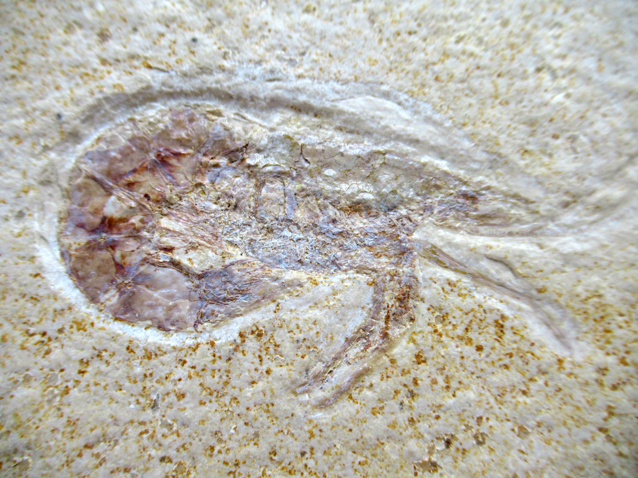 Jurassic Solnhofen Shrimp. The Solnhofen Plattenkalk, or Solnhofen limestone, is a Jurassic Konservat-Lagerstätte. This Lagerstatte preserves a rare assemblage of fossilized organisms, including highly detailed imprints of soft bodied organisms such as sea jellies.