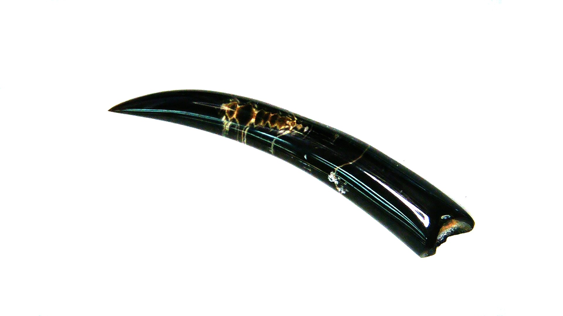 - This polished tooth measures 3.36″ long as well as .56″ wide. In addition, it will come in a 4.25″ x 5.25″ tall Riker Mount with an ID Label as well. Finally, 100% Guaranteed Genuine
