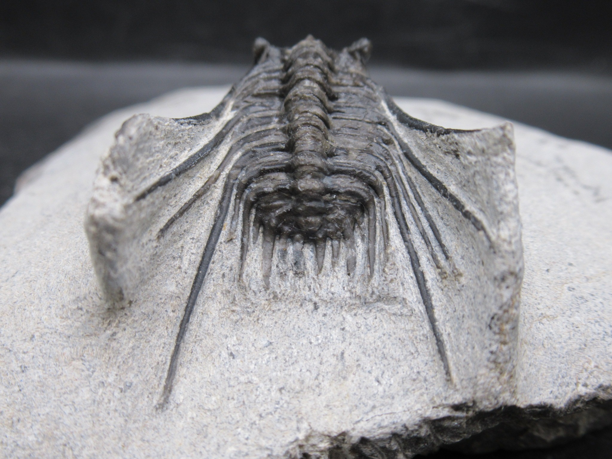 Known by its long flowing spines as well as a beautifully decorated cephalon, this specimen is certain to please.  This is a nice specimen for a beginning trilobite collector as well as an advanced collector.  Because of the conditions present when this trilobite died, this specimen was preserved with amazing details as a result.                                                                     .
