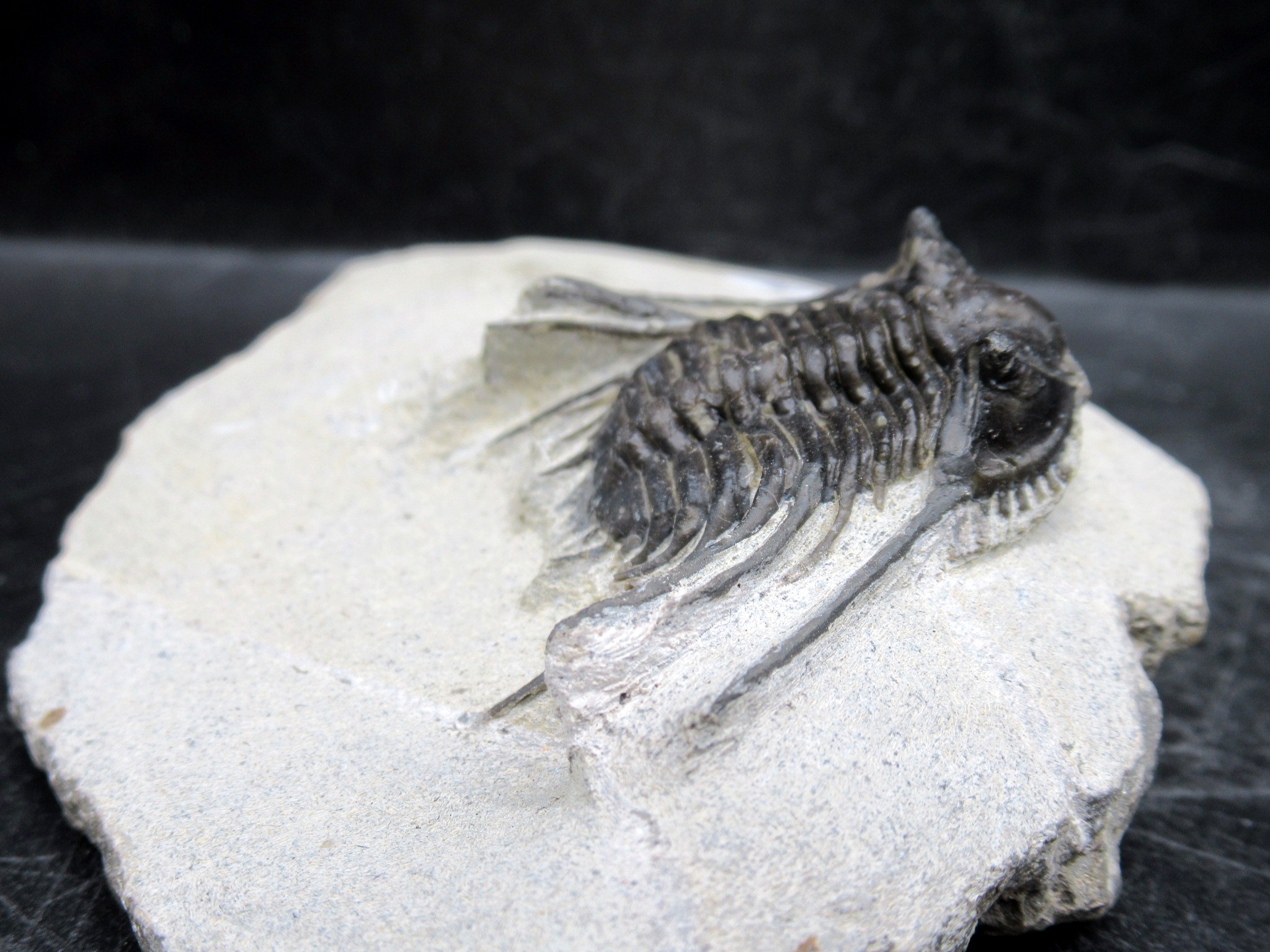 Known by its long flowing spines as well as a beautifully decorated cephalon, this specimen is certain to please. This is a nice specimen for a beginning trilobite collector as well as an advanced collector. Because of the conditions present when this trilobite died, this specimen was preserved with amazing details as a result. .