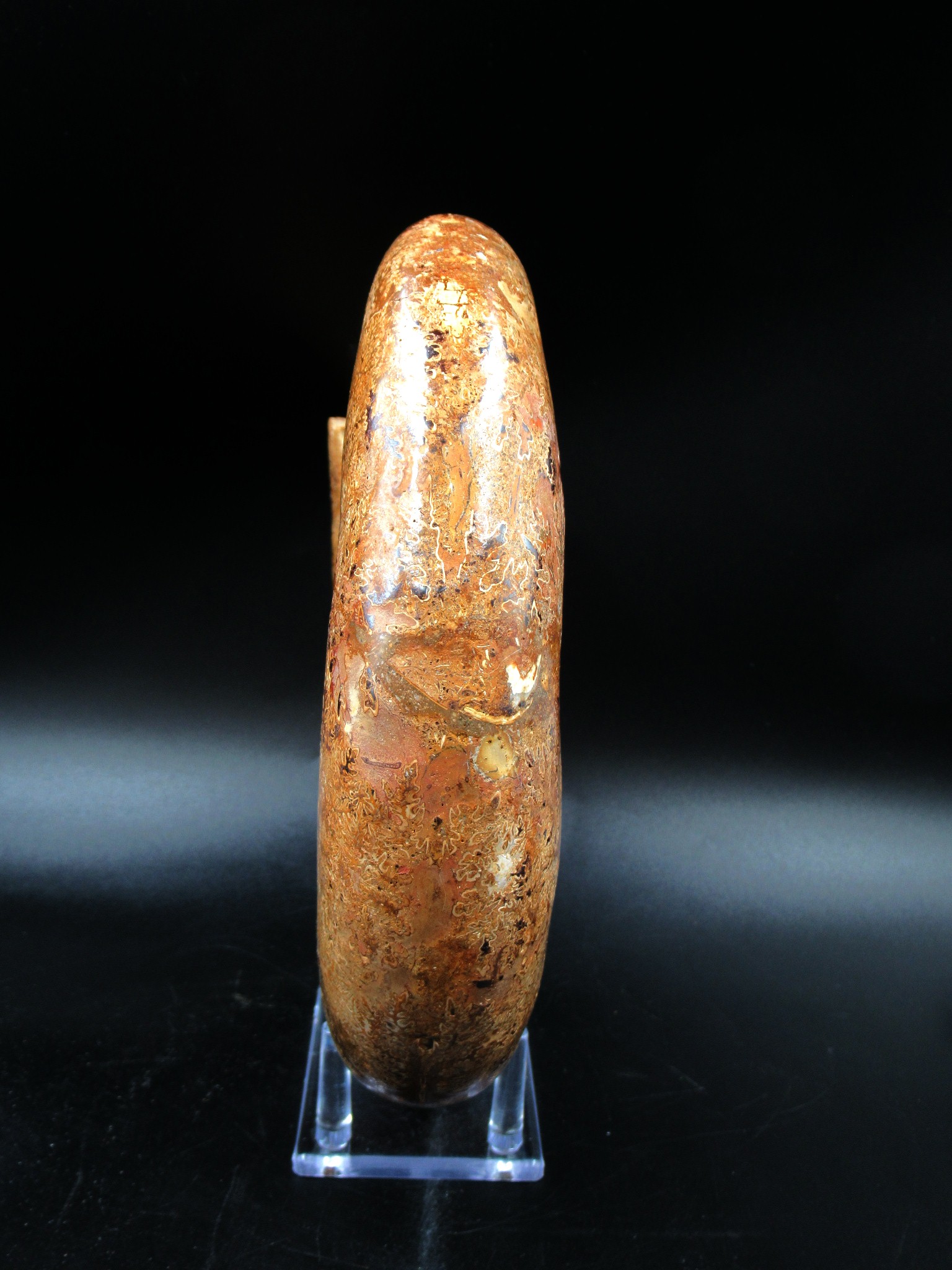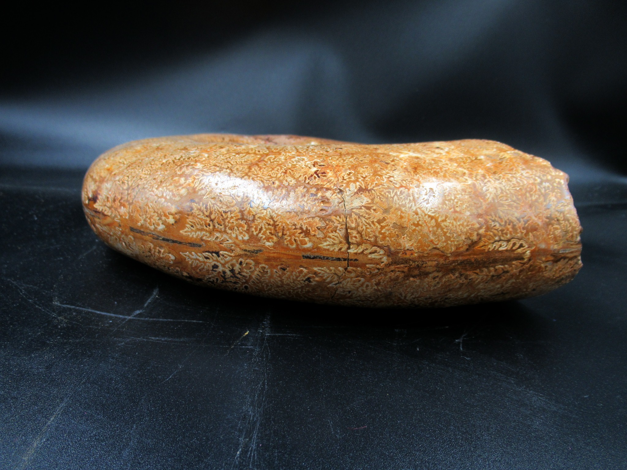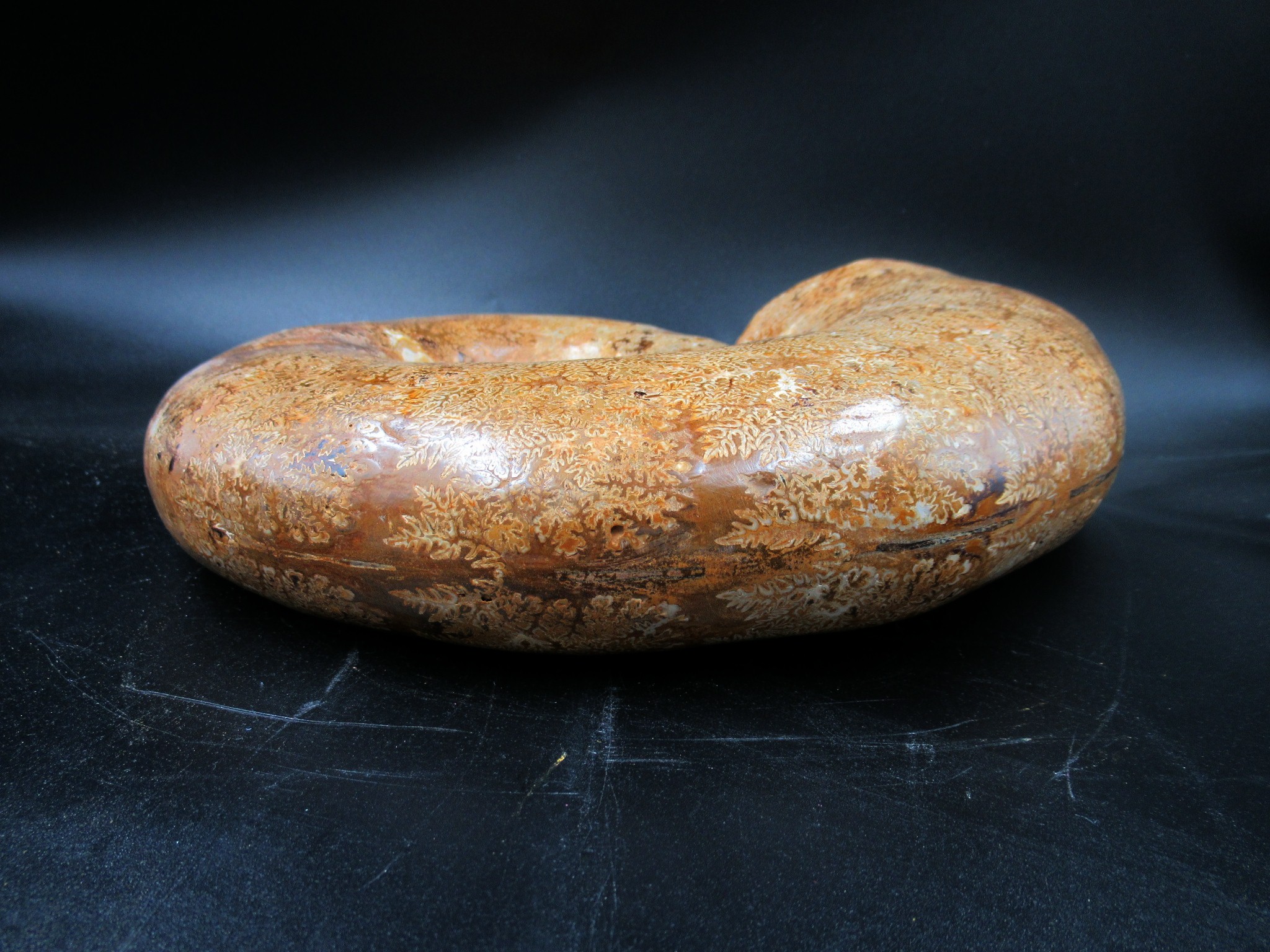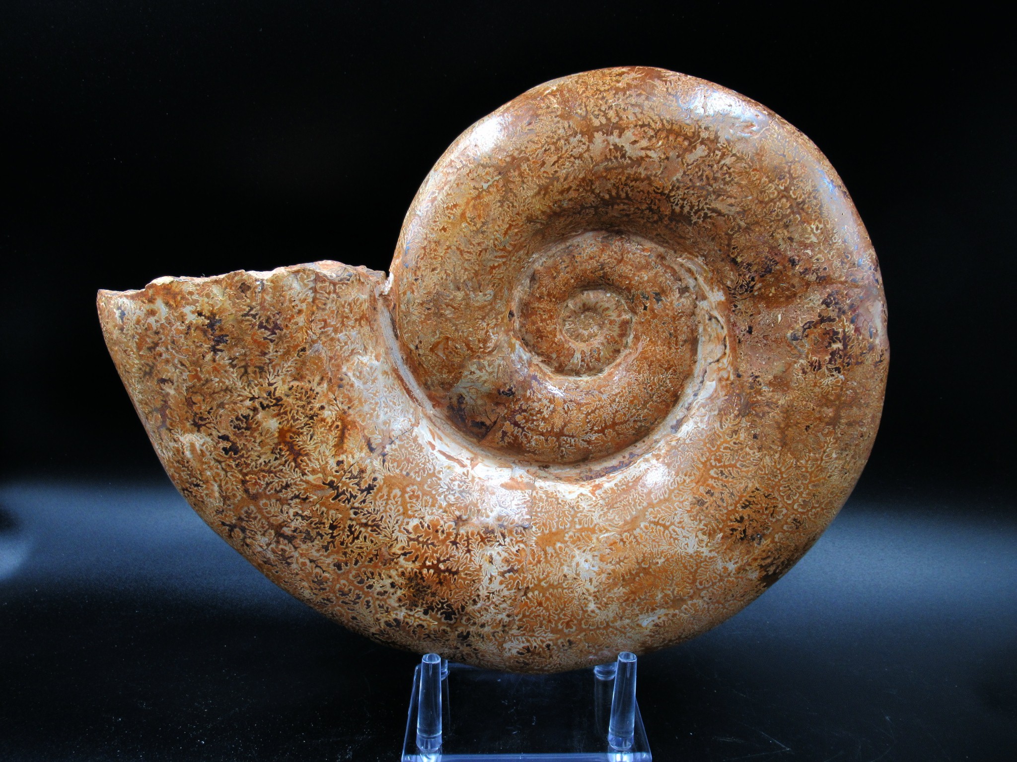 This is an extinct genus of ammonite cephalopod. They lived during the Middle to Late Jurassic epochs and serve as an index fossil for that time period. This is a beautiful specimen with nice, smooth ribs and heavy sutures present as well. In addition, this specimen has been polished and displays well