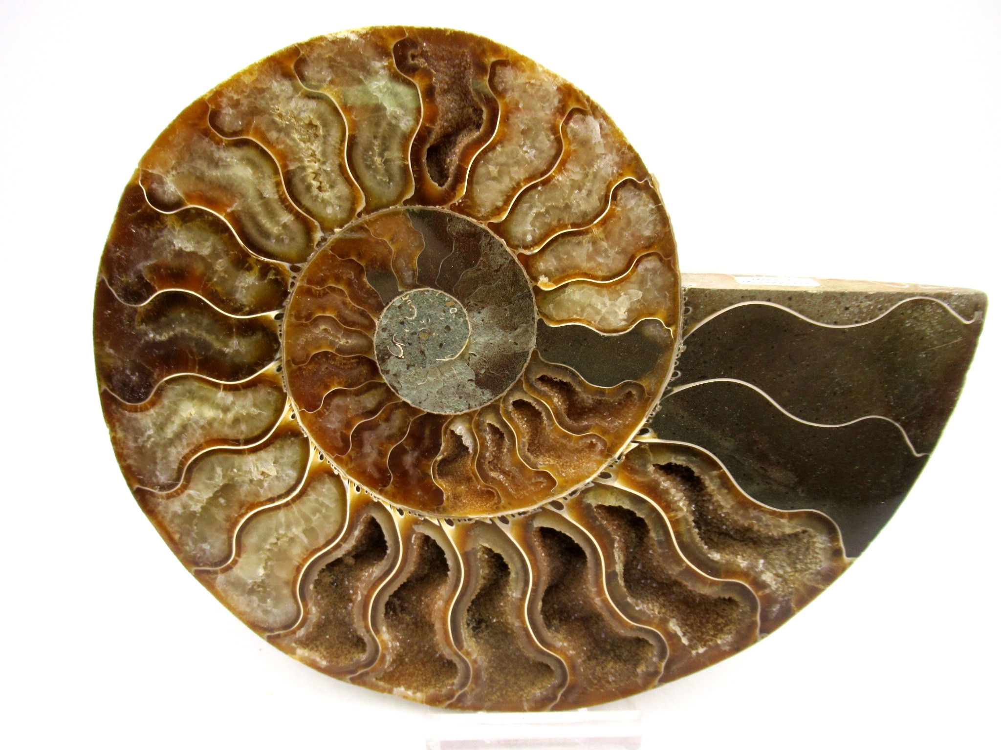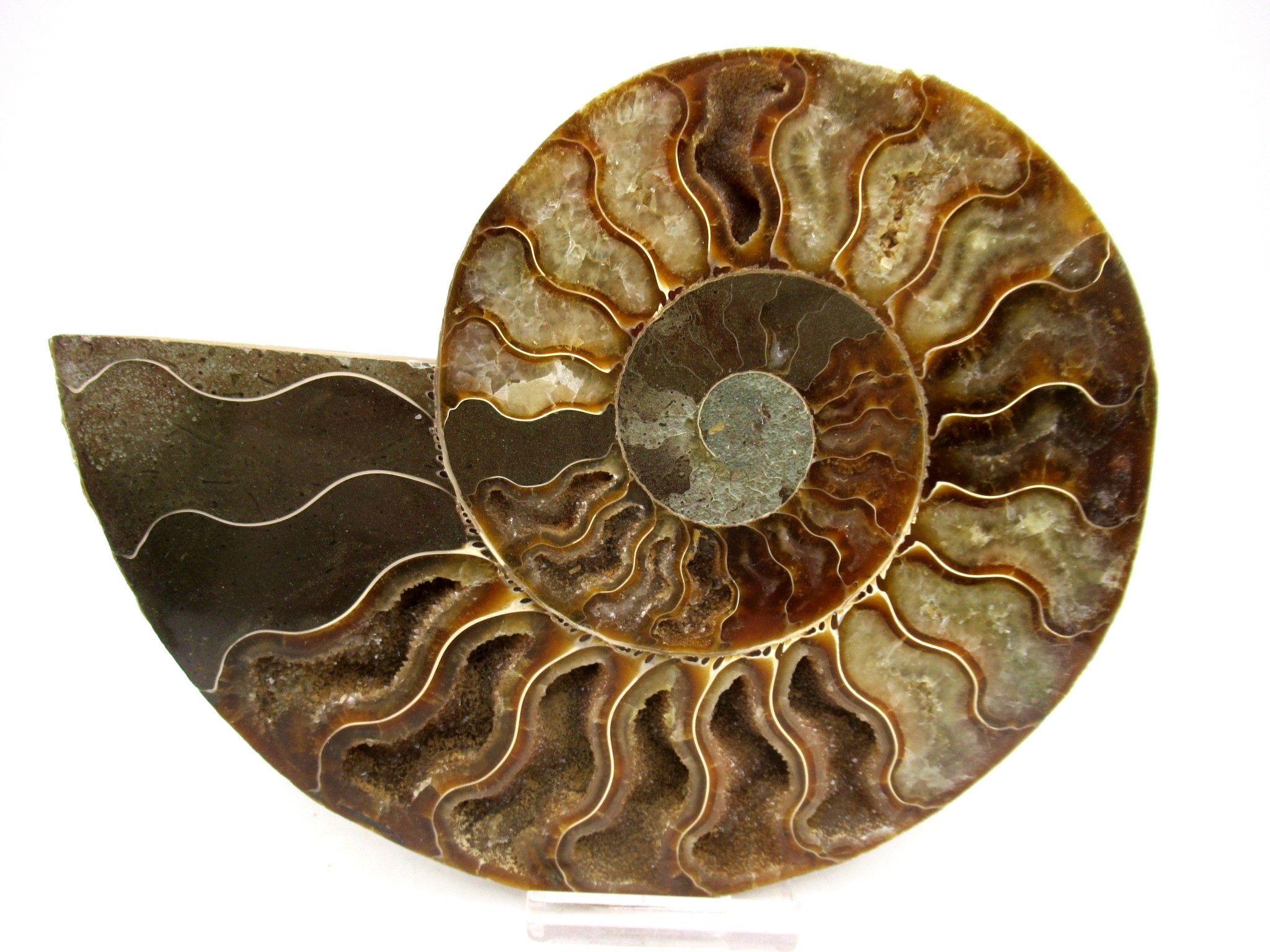 - This beautiful cut & polished specimen shows off the internal chambers as well as the outer shell!
