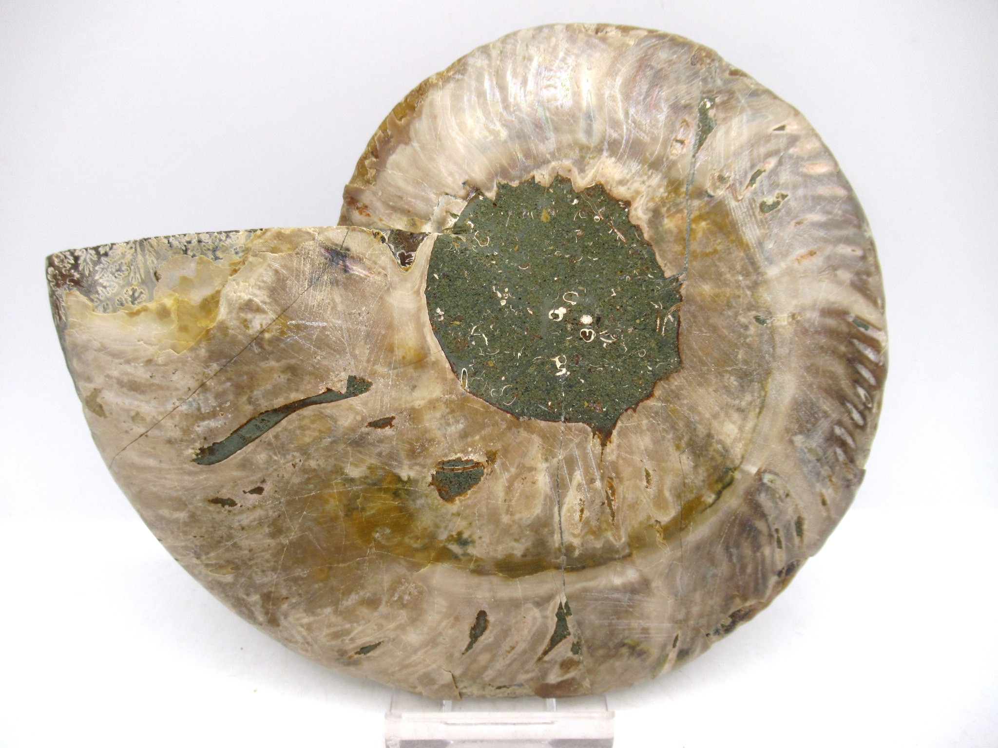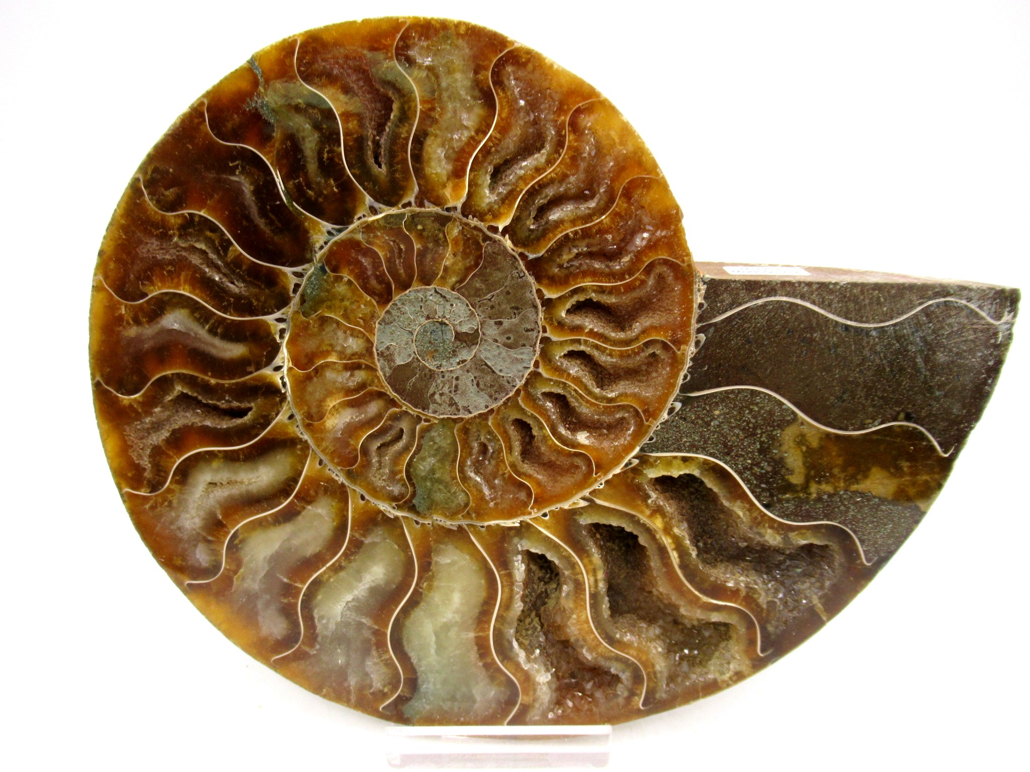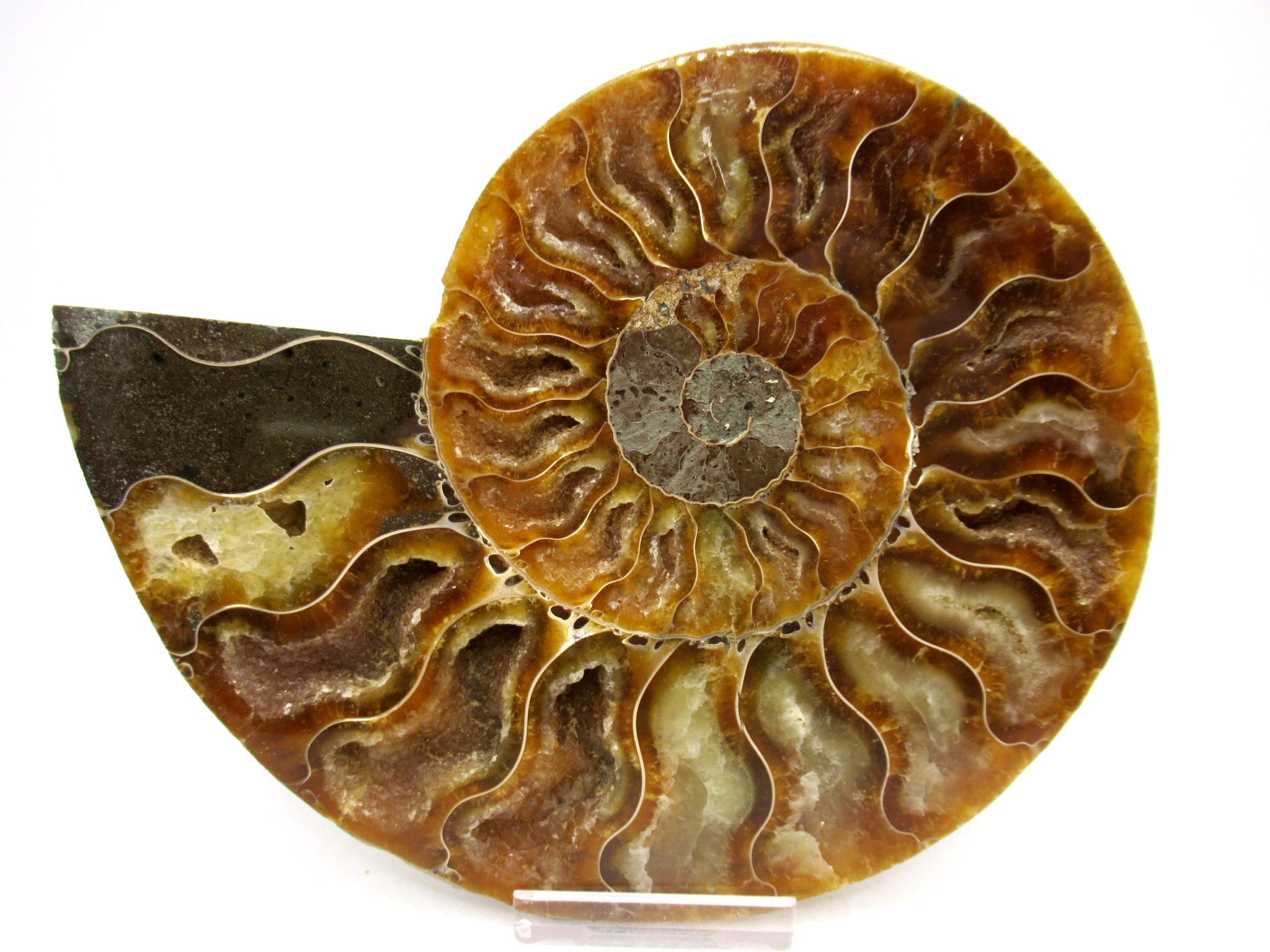- This beautiful cut & polished specimen shows off the internal chambers as well as the outer shell!