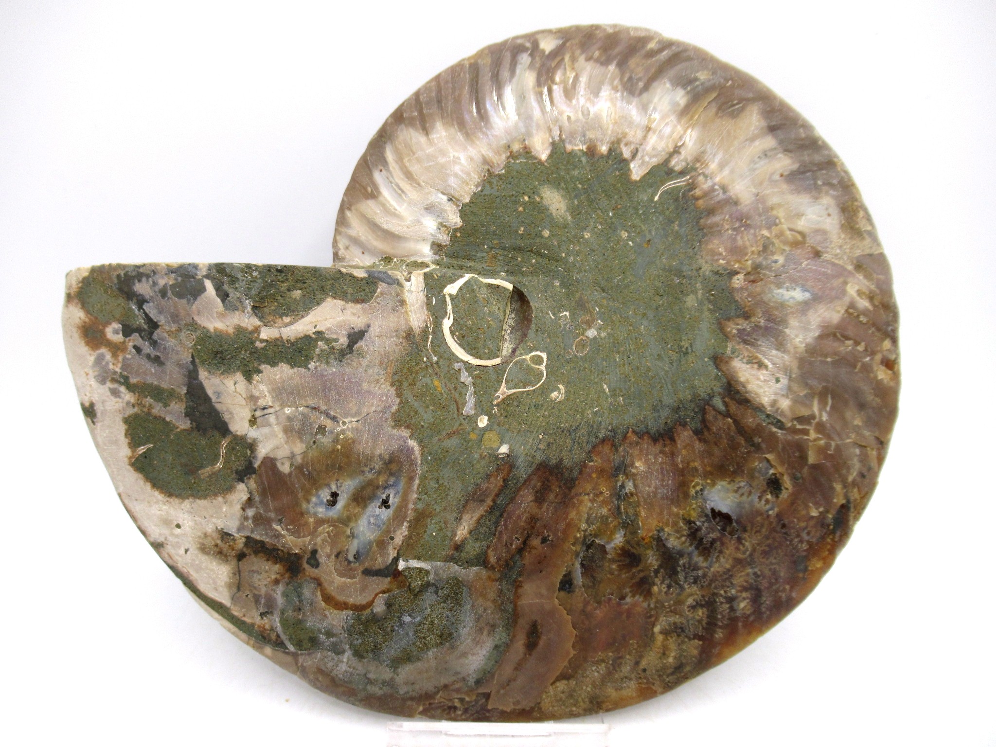 - This beautiful cut & polished specimen shows off the internal chambers as well as the outer shell!