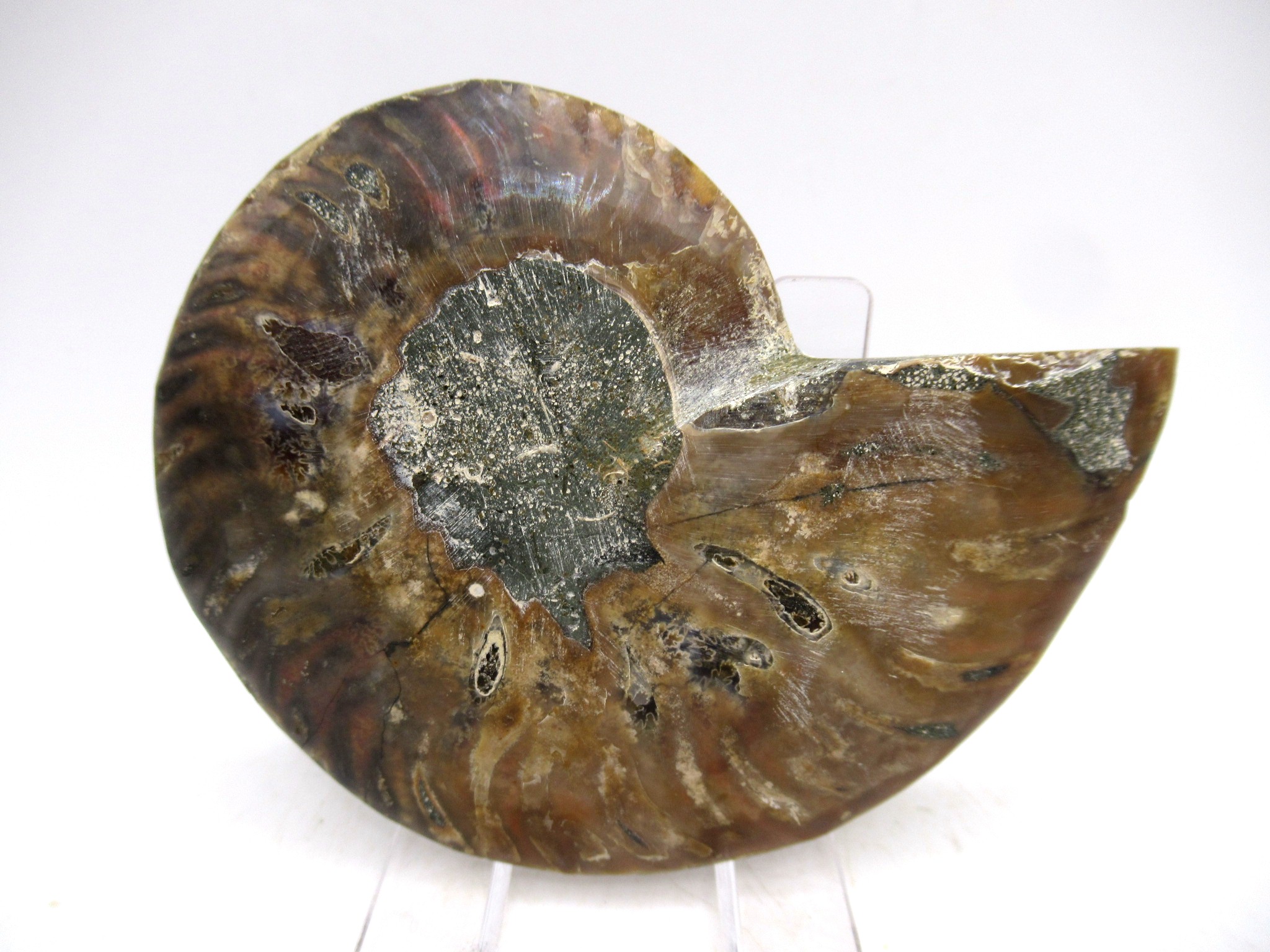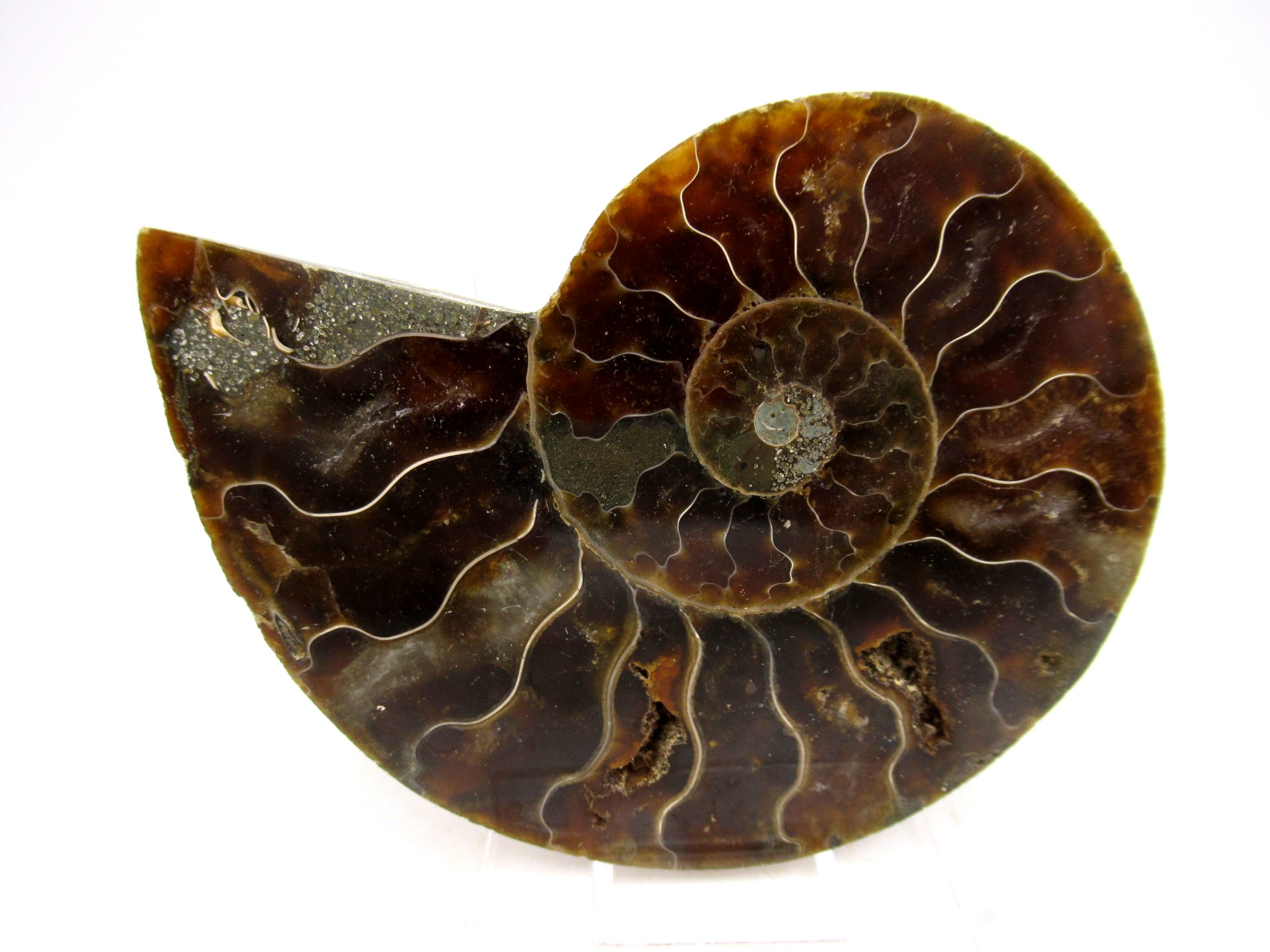 - This beautiful cut & polished specimen shows off the internal chambers as well as the outer shell!