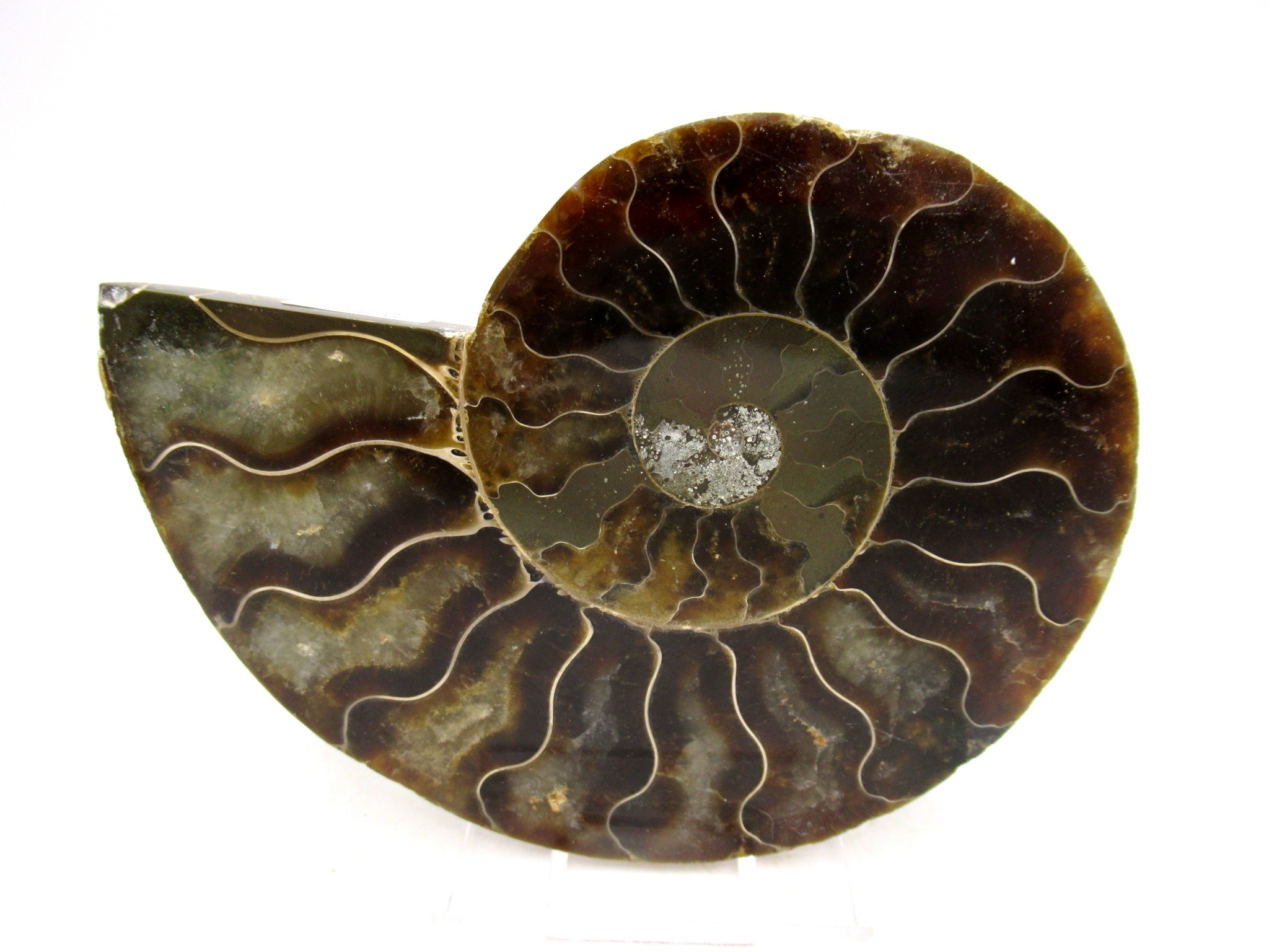 - This beautiful cut & polished specimen shows off the internal chambers as well as the outer shell!
