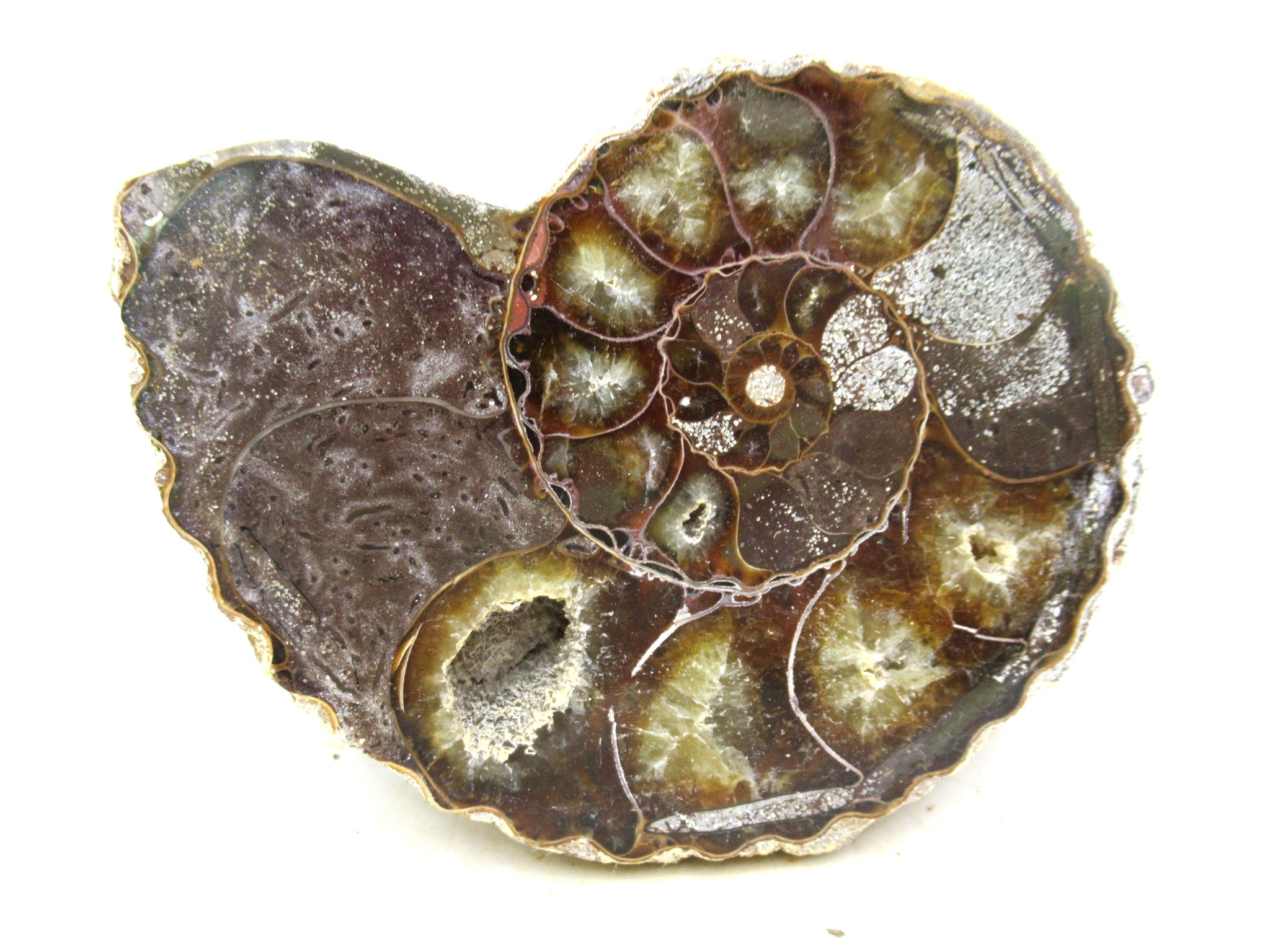 - This beautiful cut & polished specimen shows off the internal chambers as well as the outer shell!