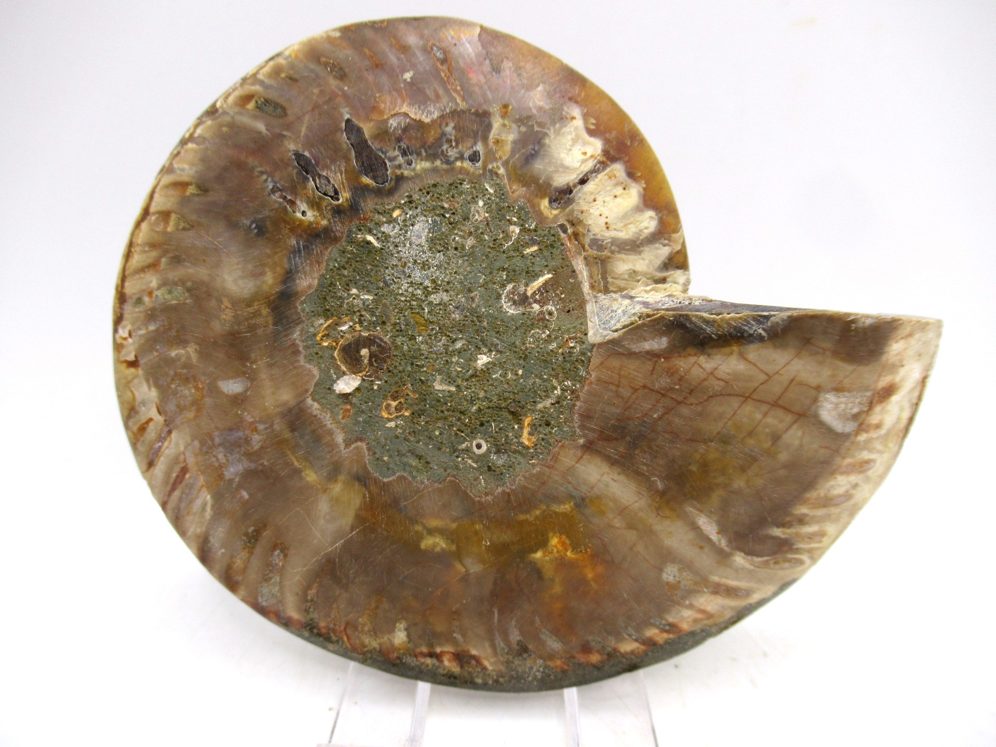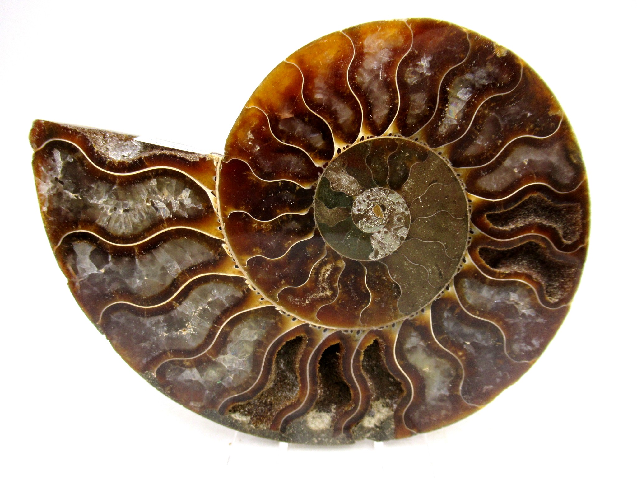 - This beautiful cut & polished specimen shows off the internal chambers as well as the outer shell!