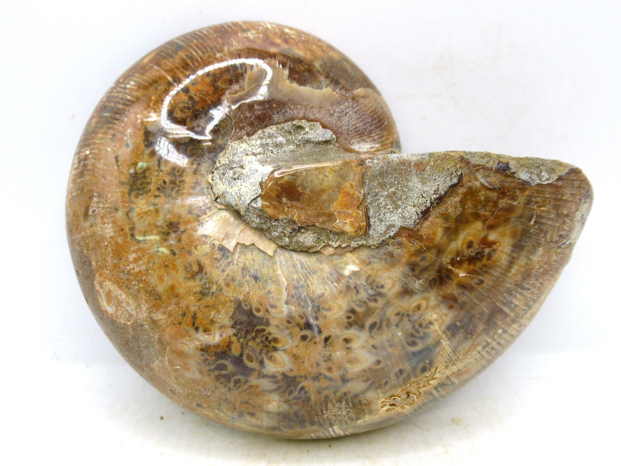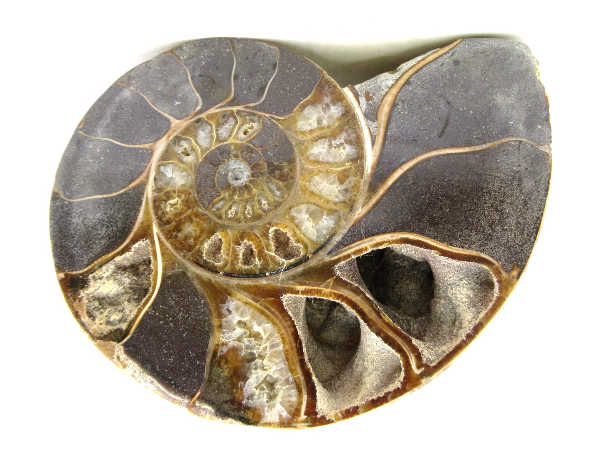 - This beautiful cut & polished specimen shows off the internal chambers as well as the outer shell!