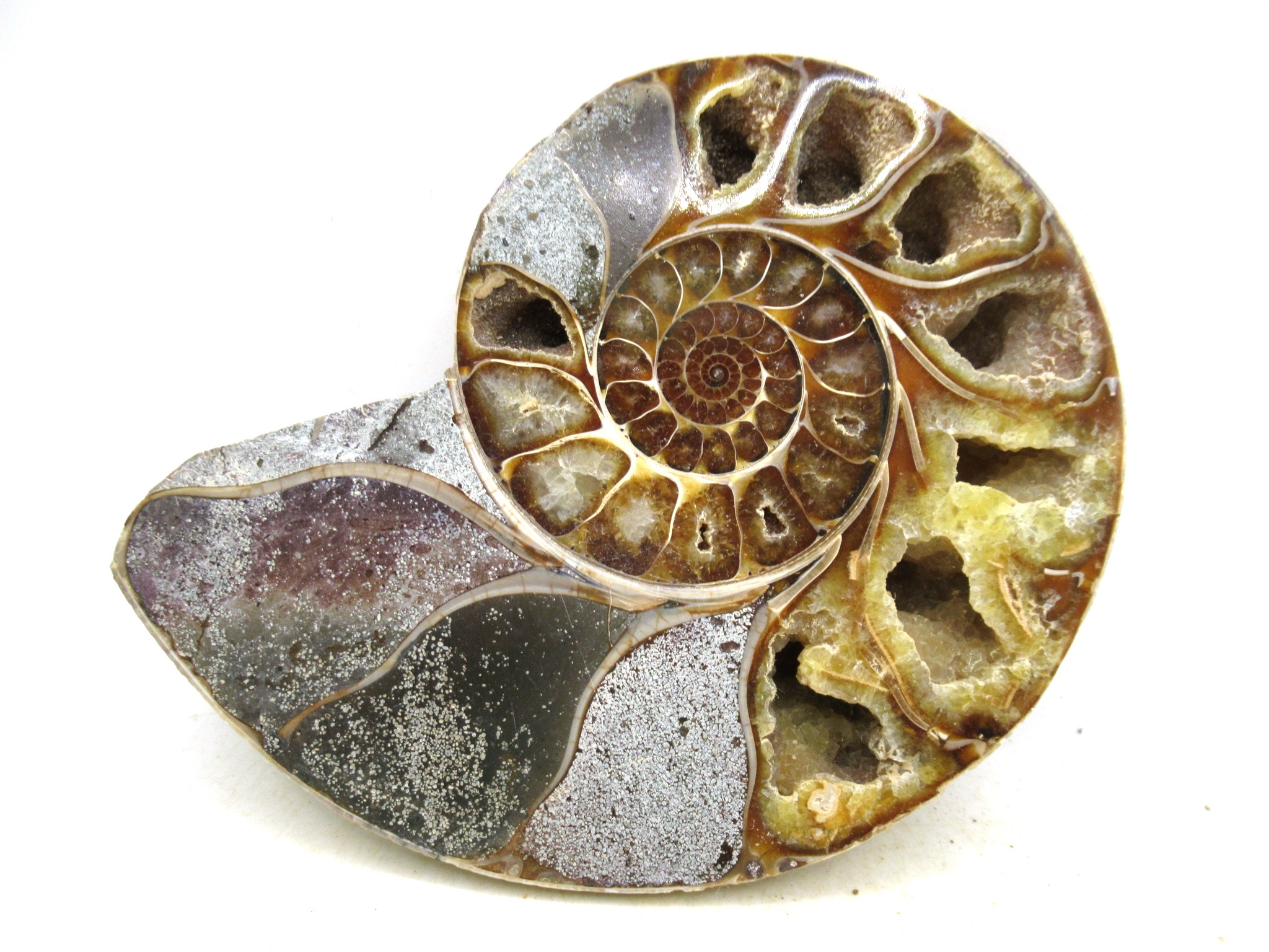 - This beautiful cut & polished specimen shows off the internal chambers as well as the outer shell!