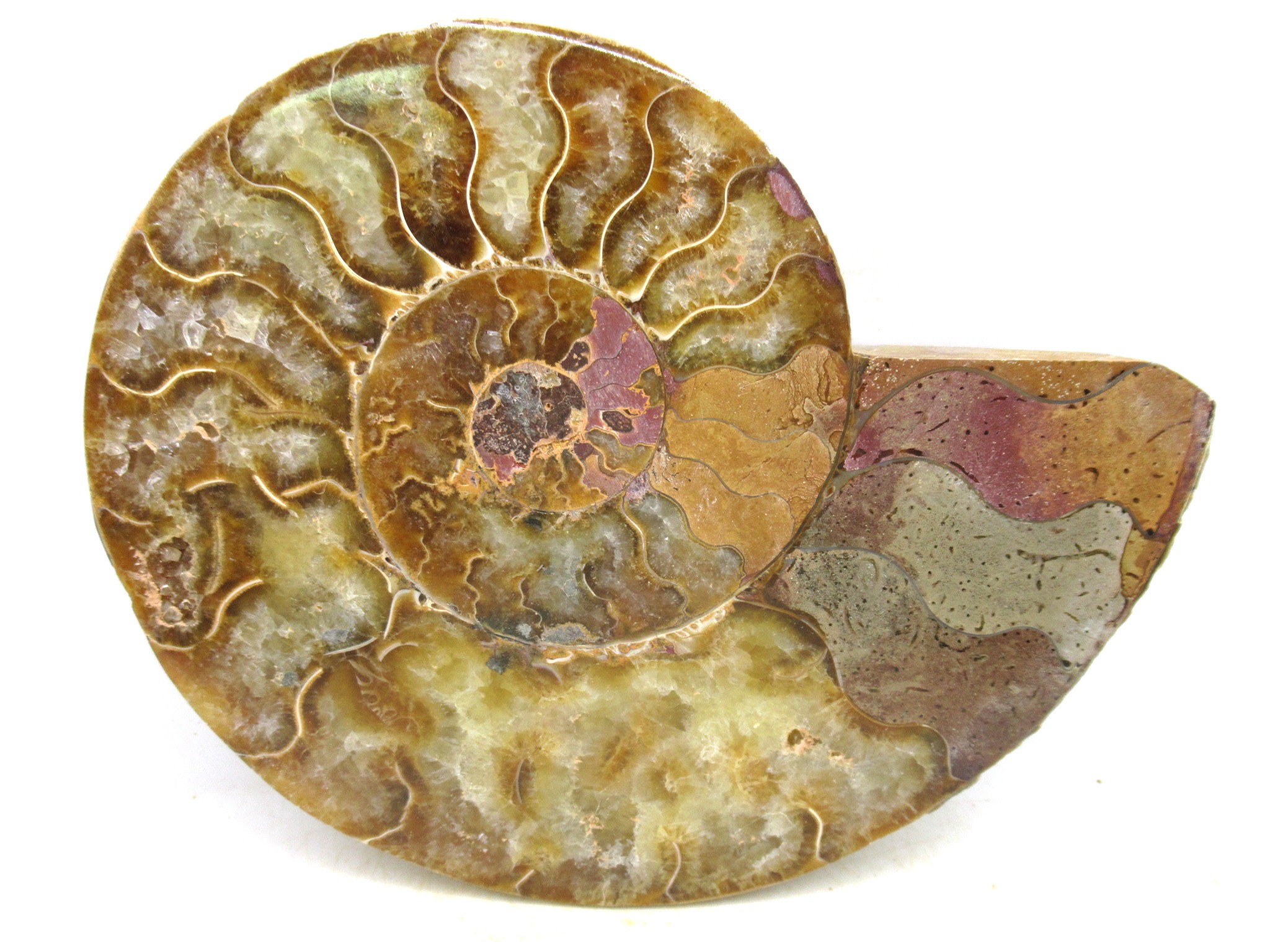 - This beautiful cut & polished specimen shows off the internal chambers as well as the outer shell!
