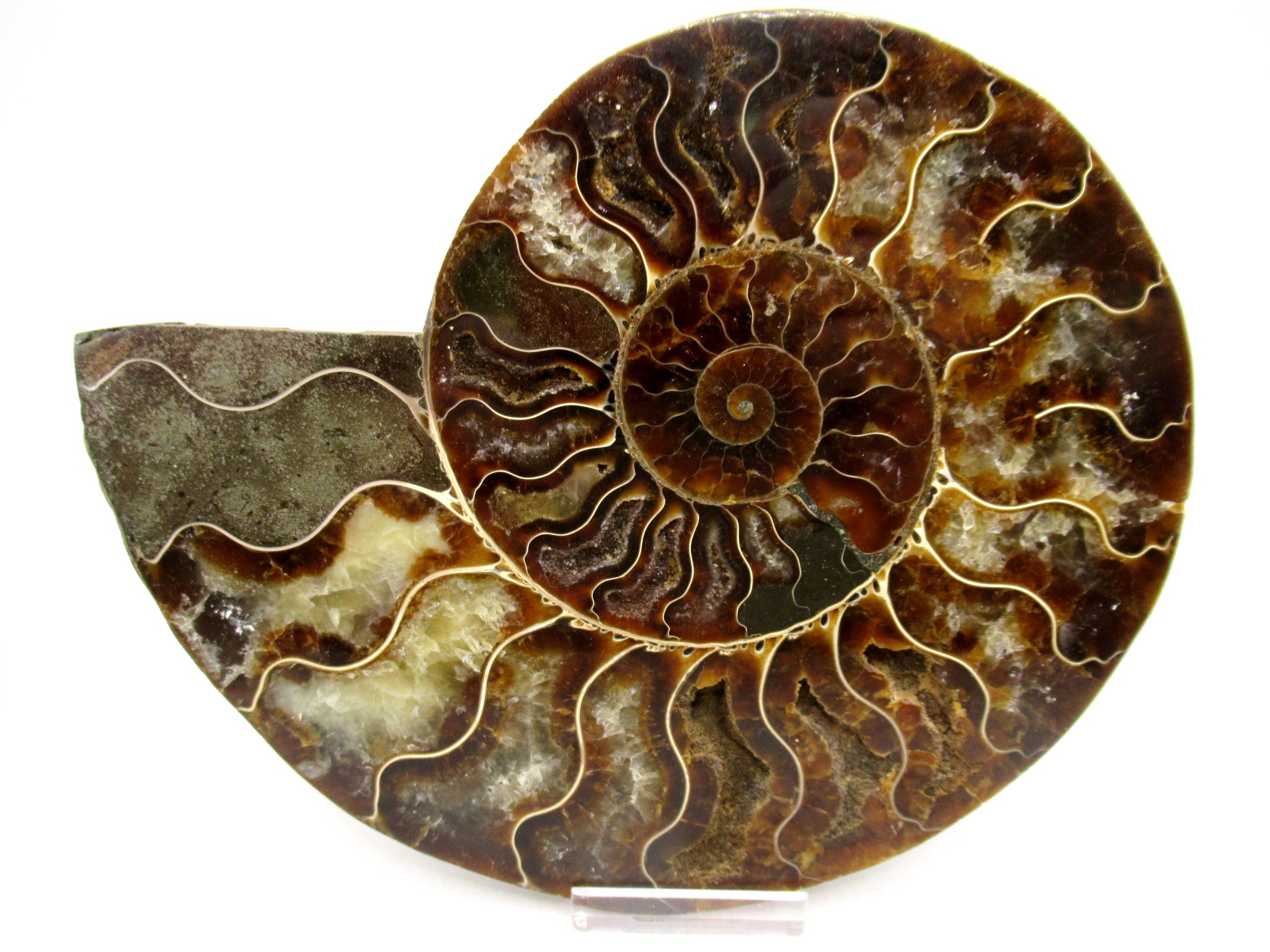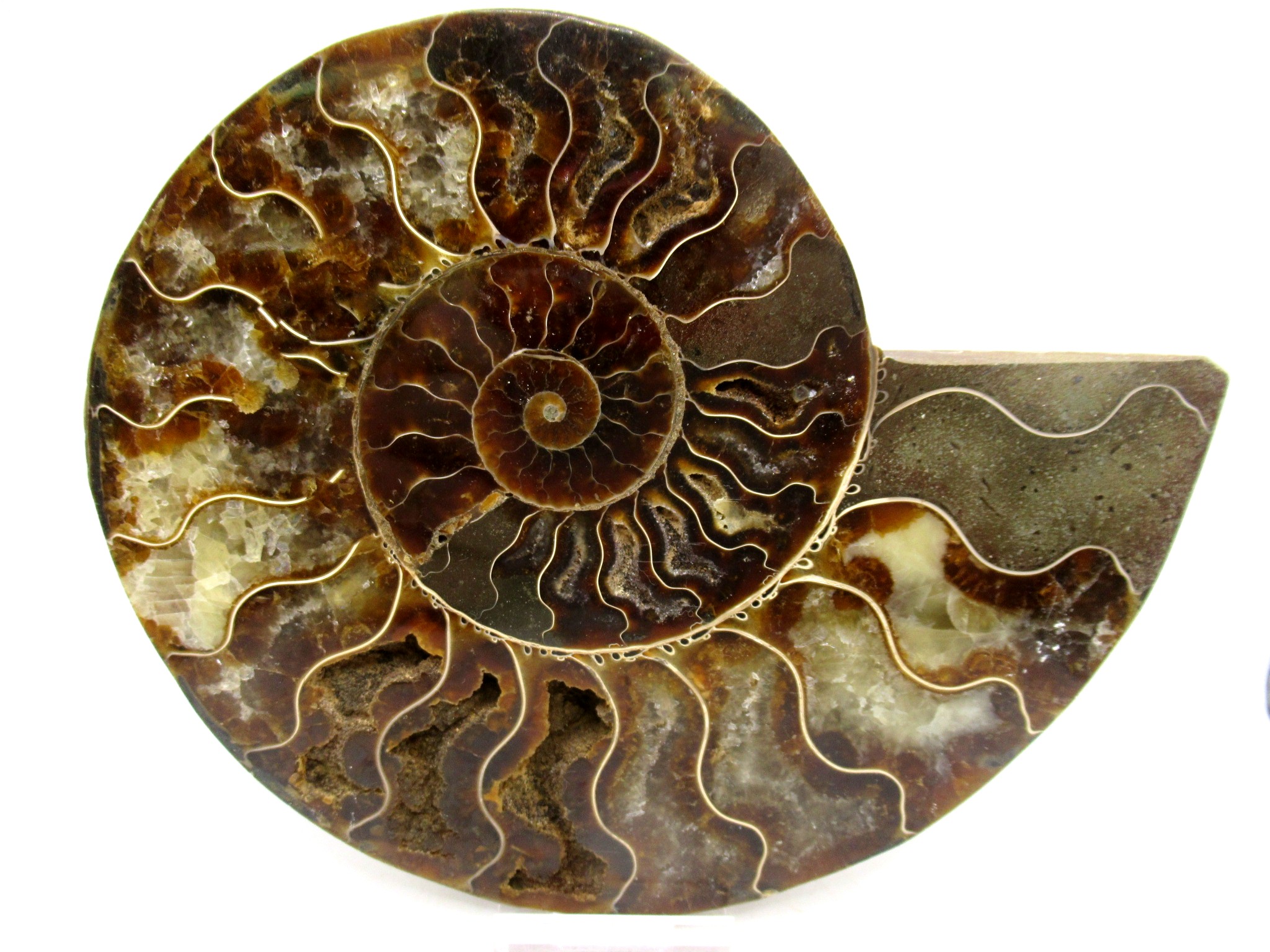 - This beautiful cut & polished specimen shows off the internal chambers as well as the outer shell!