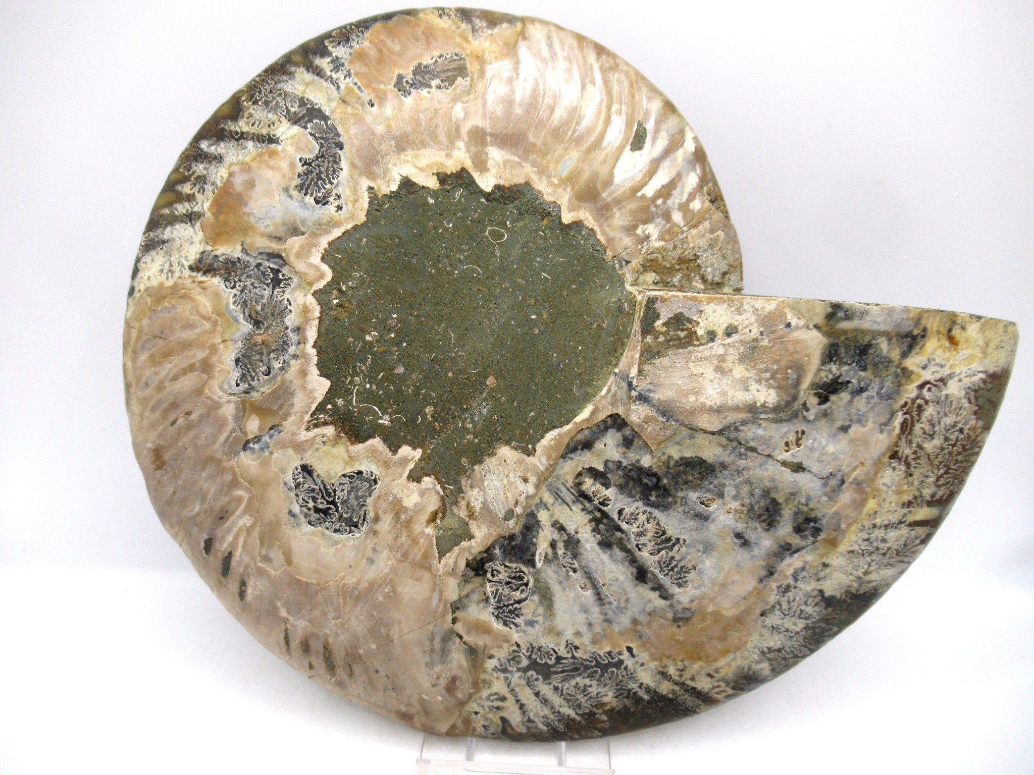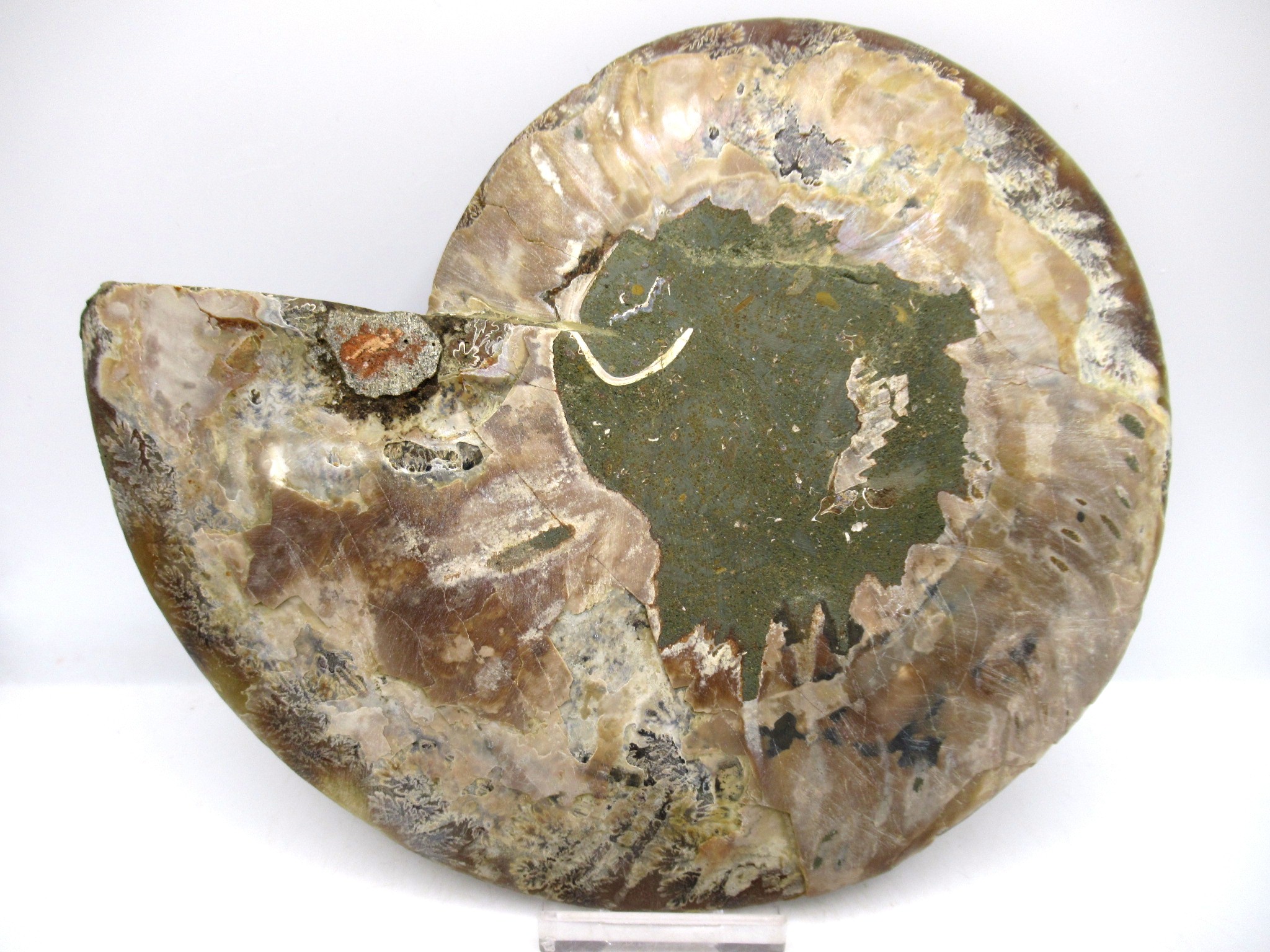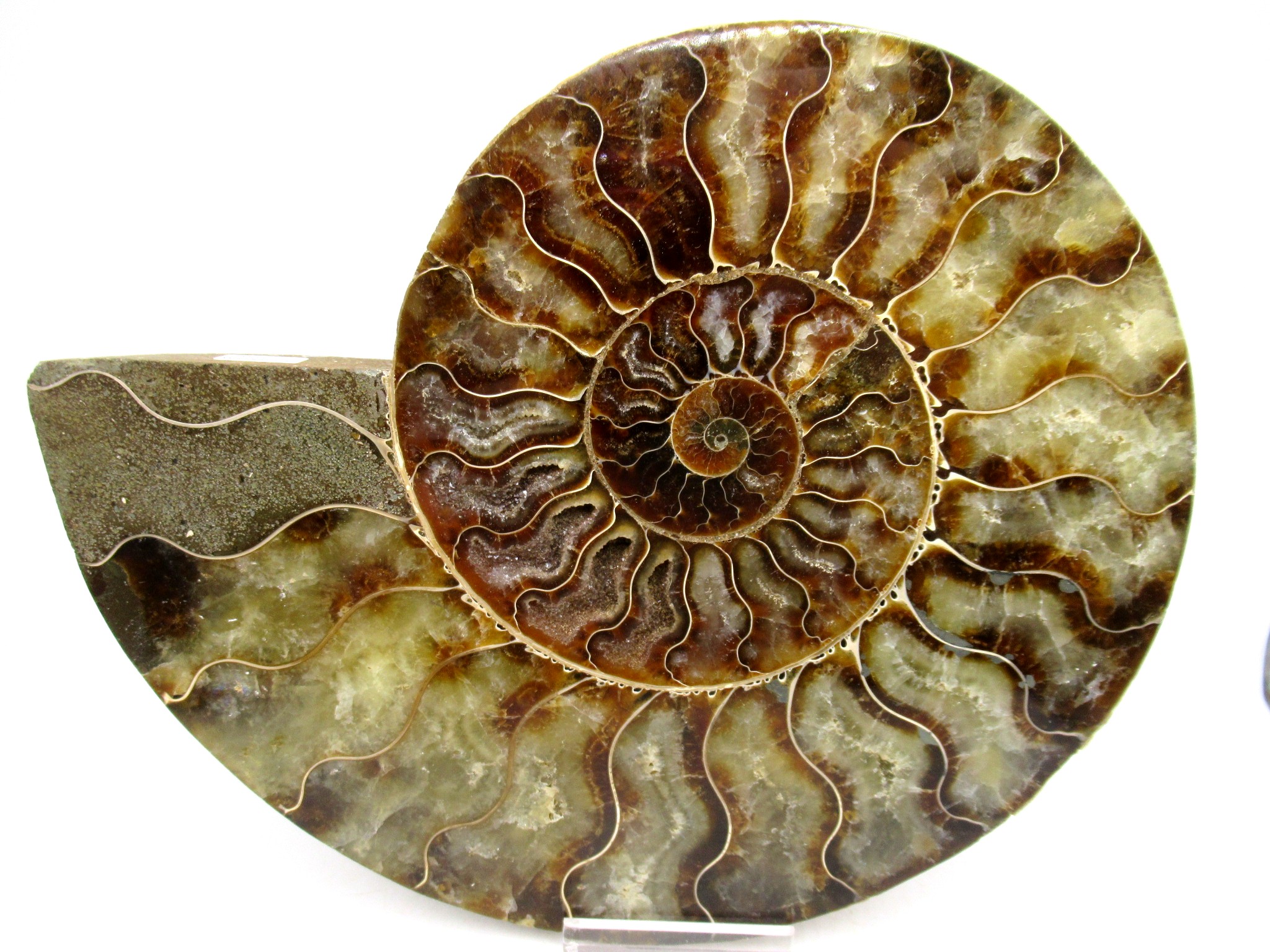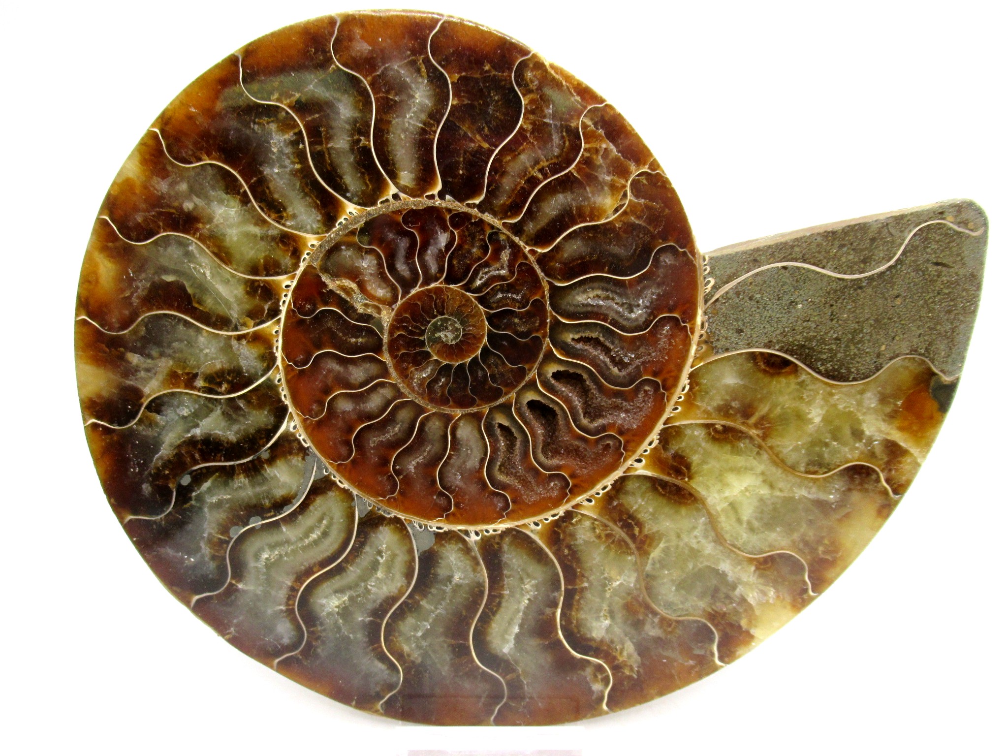 - This beautiful cut & polished specimen shows off the internal chambers as well as the outer shell!