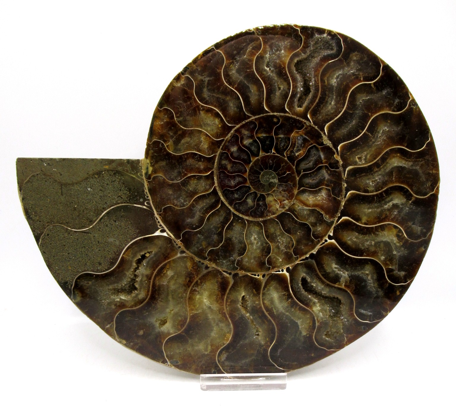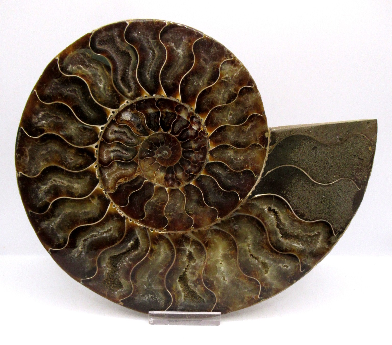 - This beautiful cut & polished specimen shows off the internal chambers as well as the outer shell!